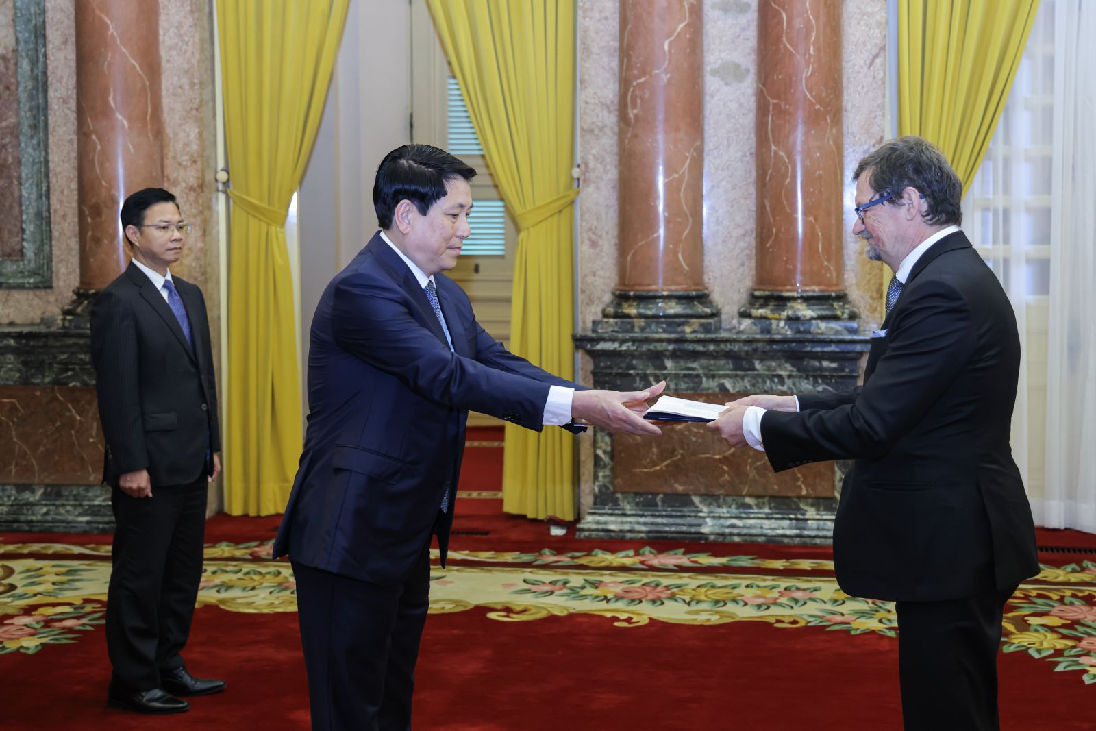 Khẳng định tiềm năng quan hệ hợp tác, nhất là về kinh tế, thương mại, đầu tư giữa hai nước còn lớn; trên cơ sở nhu cầu và thế mạnh mỗi nước, Chủ tịch nước mong muốn trong nhiệm kỳ của mình, Đại sứ sẽ kết nối, thúc đẩy kim ngạch thương mại hai bên tương xứng tiềm năng, lợi thế của mỗi nước; thúc đẩy tăng cường hợp tác khoa học công nghệ, quốc phòng an ninh, giáo dục và đào tạo, chuyển đổi số, trí tuệ nhân tạo...