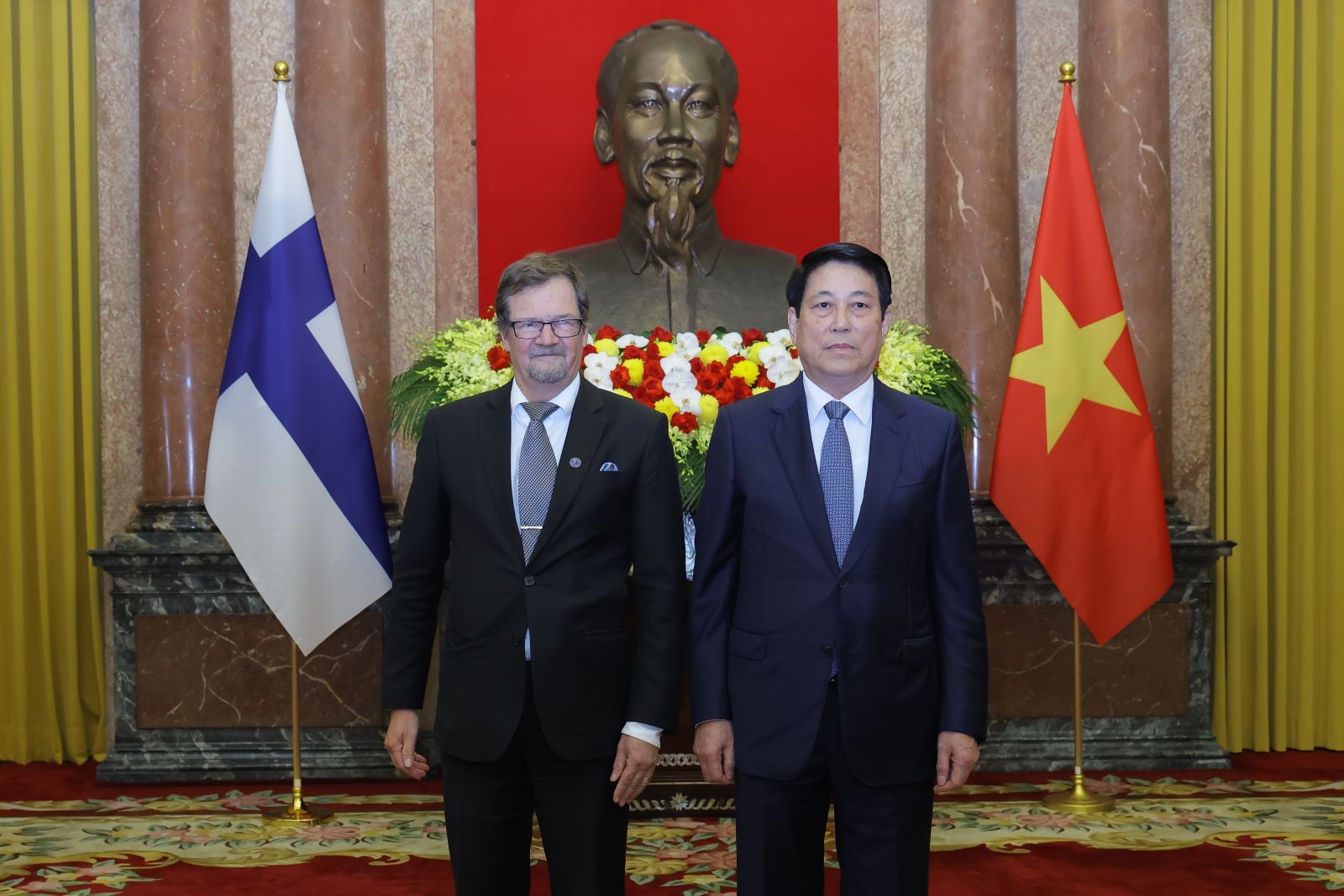 Nhấn mạnh quan hệ hữu nghị hợp tác giữa hai nước sau hơn 50 năm thiết lập quan hệ ngoại giao đạt được nhiều thành tựu tốt đẹp nhưng so với tiềm năng, thế mạnh của mỗi nước còn khiêm tốn, Chủ tịch nước đề nghị, trong nhiệm kỳ của mình, Đại sứ Pekka Voutilainen sẽ thúc đẩy hơn nữa quan hệ hợp tác những lĩnh vực mà hai bên cùng quan tâm và có thế mạnh, nhu cầu như khoa học công nghệ, chuyển đổi số, kinh tế tuần hoàn.