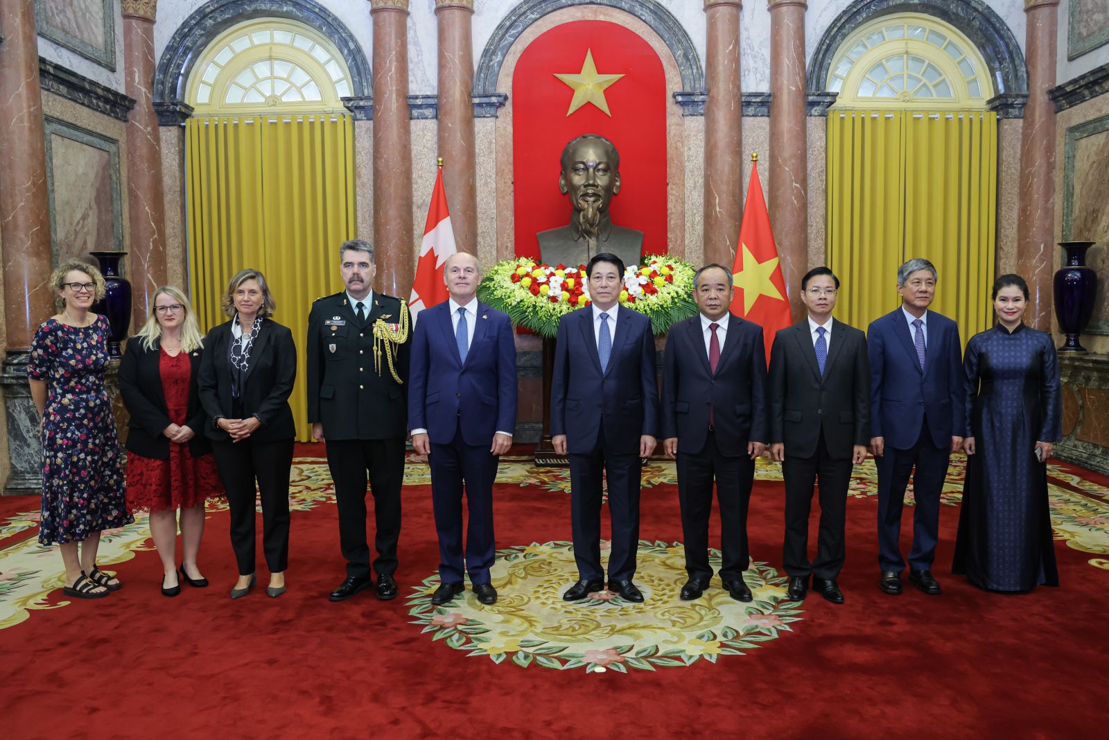 Chủ tịch nước Lương Cường cùng Đại sứ Canada tại Việt Nam James Nickel và các đại biểu. Ảnh: VPCTN