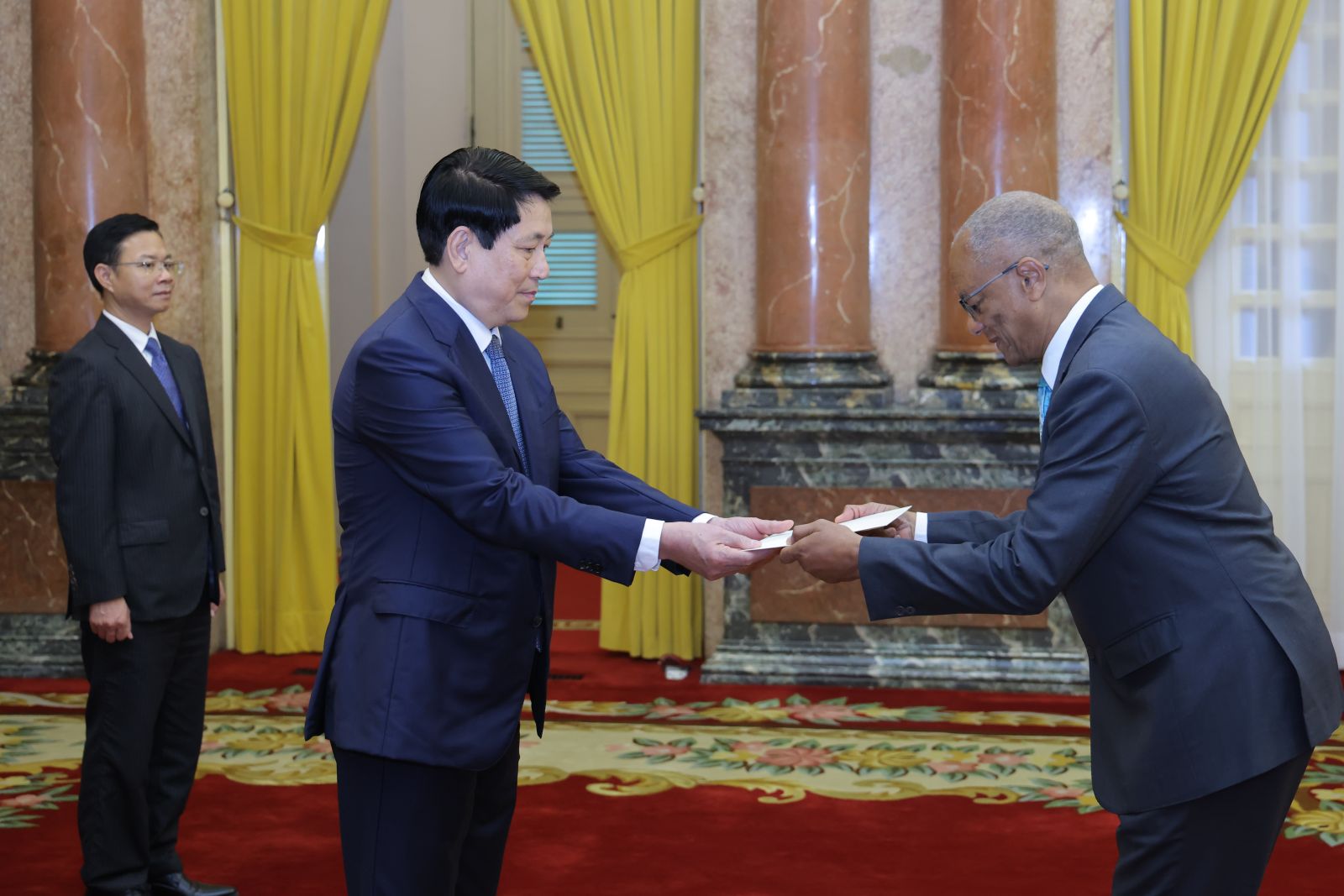 Chủ tịch nước tiếp nhận Quốc thư từ Đại sứ kiêm nhiệm Jamaica. Ảnh: VPCTN
