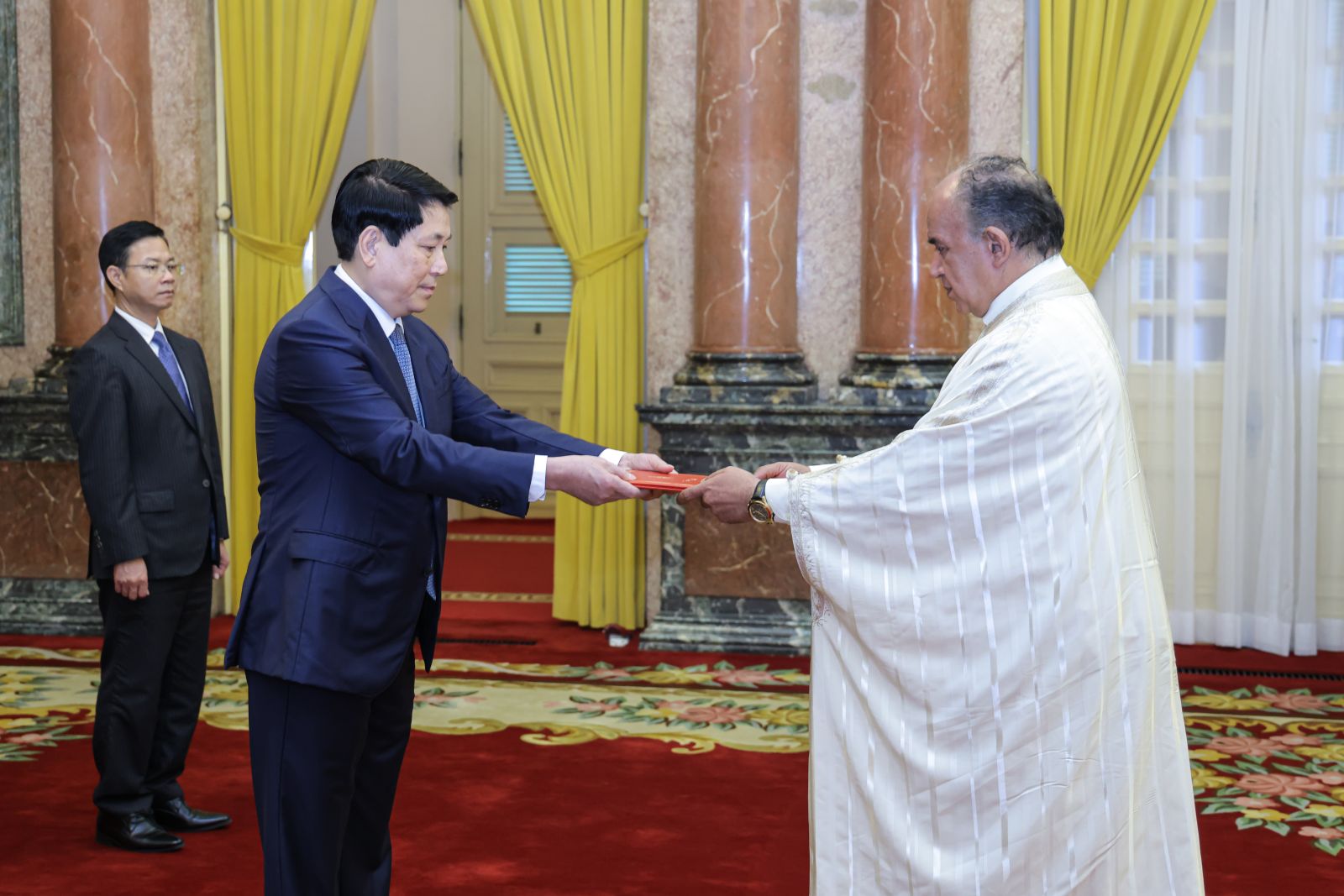 Chủ tịch nước tiếp nhận Quốc thư từ Đại sứ kiêm nhiệm Tunisia. Ảnh: VPCTN