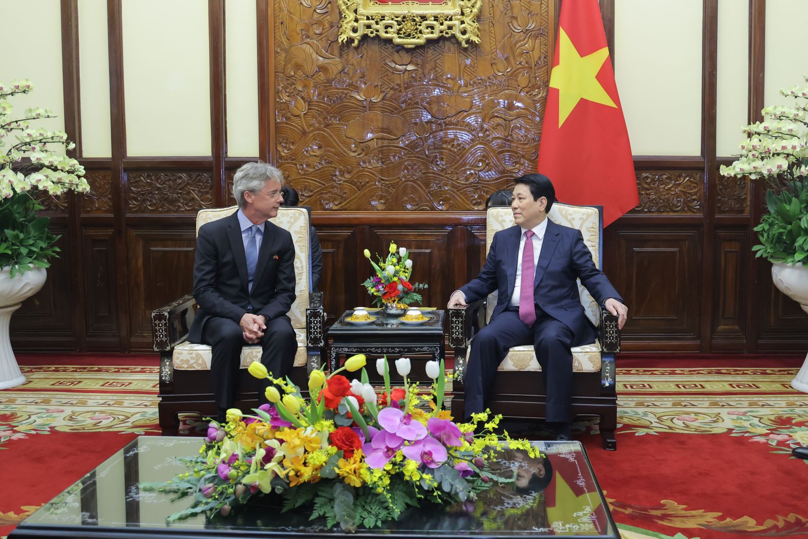 Chủ tịch nước Lương Cường với Đại sứ Vương quốc Saudi Arabia tại Việt Nam Thamer Mohammed al-Gosaibi. Ảnh: VPCTN