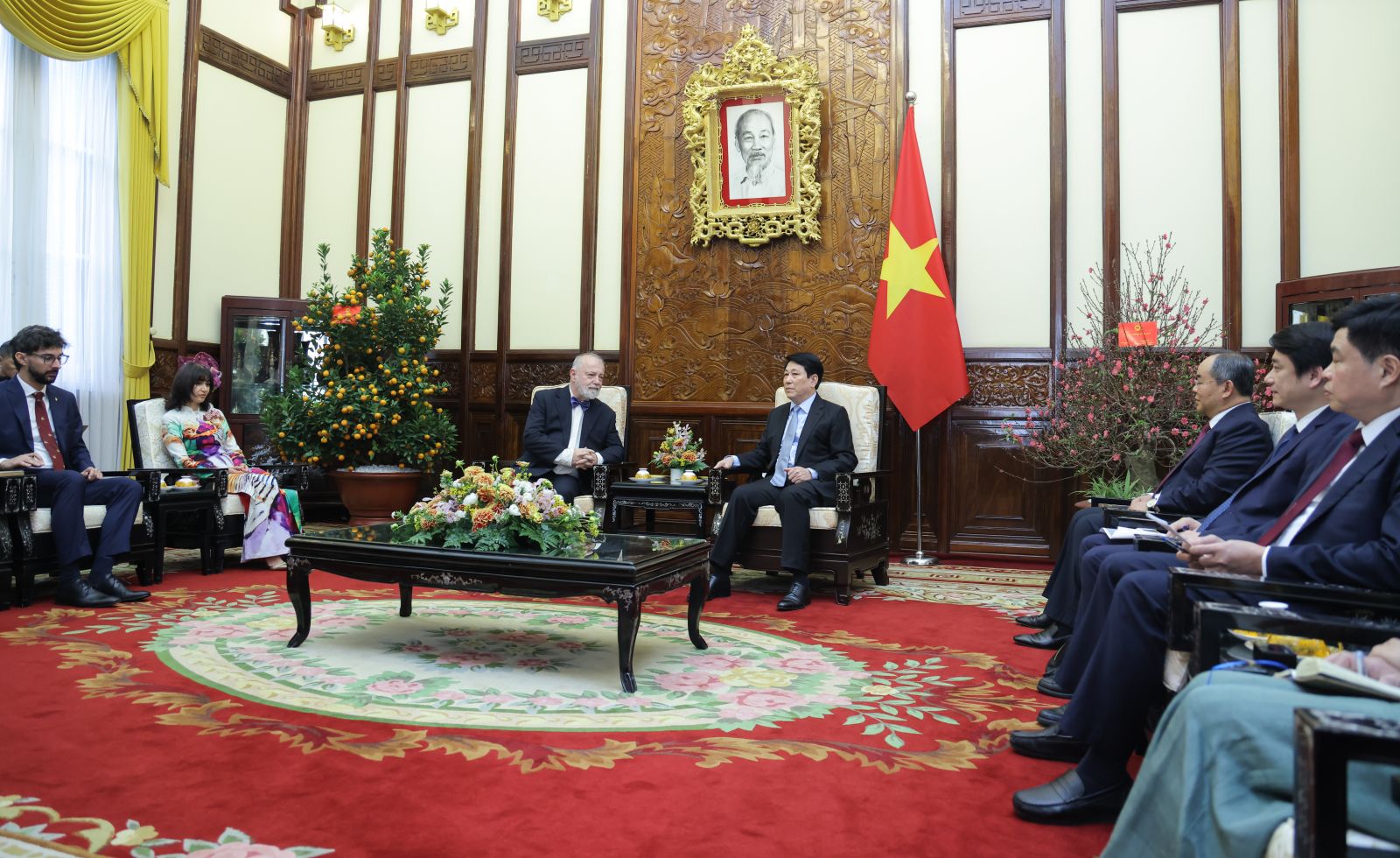 Chủ tịch nước Lương Cường tiếp Đại sứ Cộng hòa Czech tại Việt Nam Hynek Kmoníček đến chào từ biệt. Ảnh: VPCTN