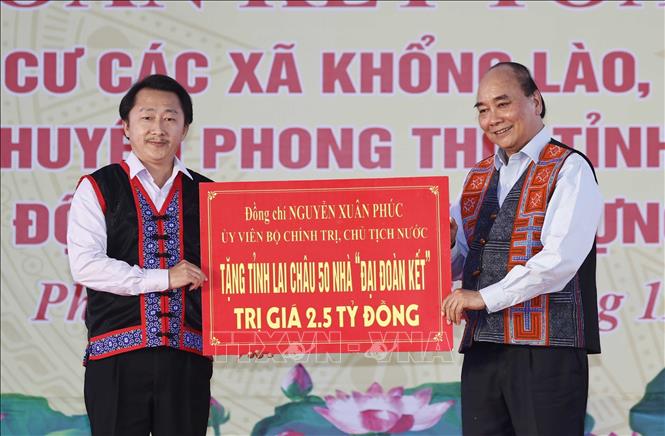 Chủ tịch nước Nguyễn Xuân Phúc tặng 50 nhà Đại đoàn kết cho tỉnh Lai Châu.