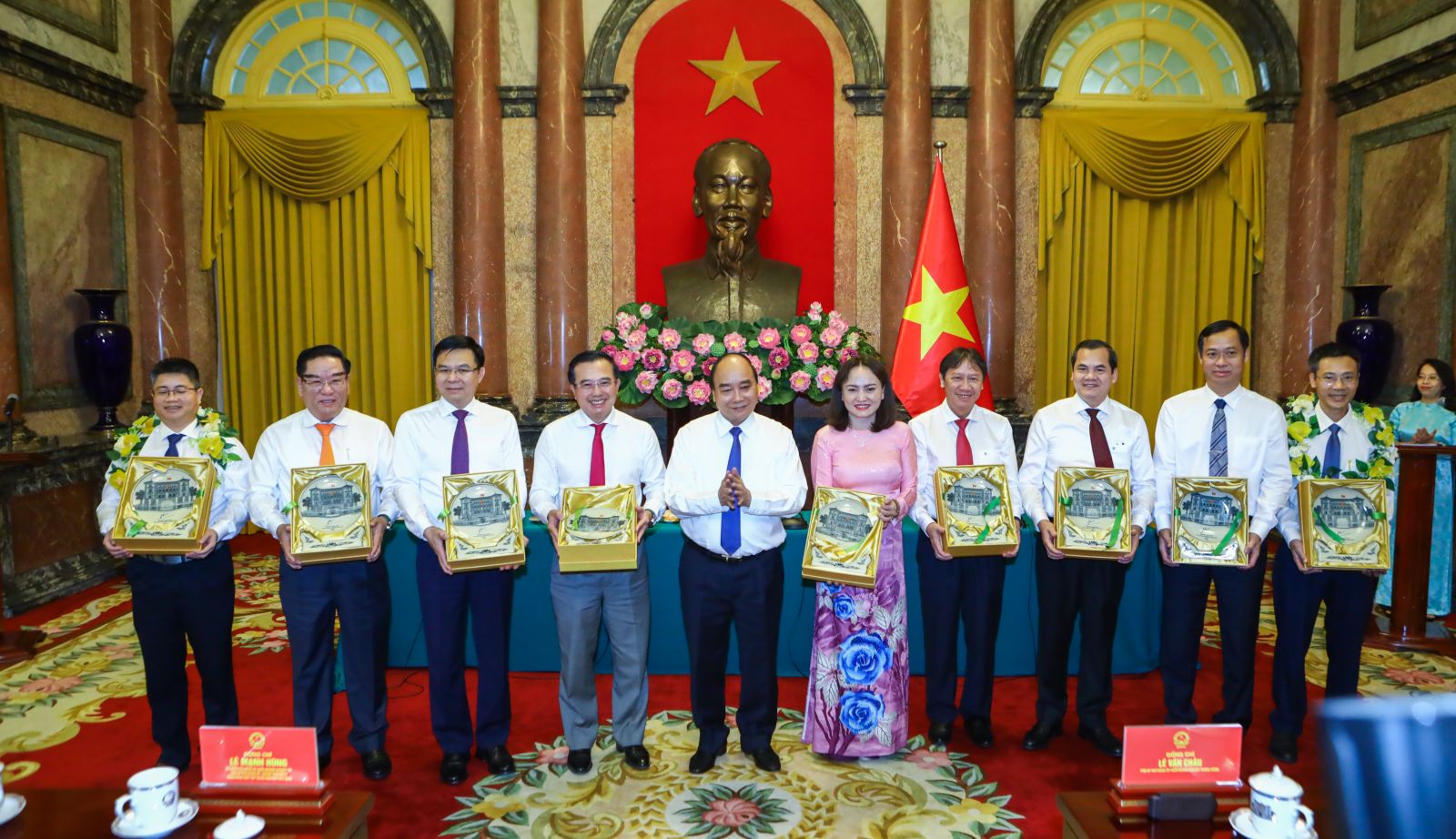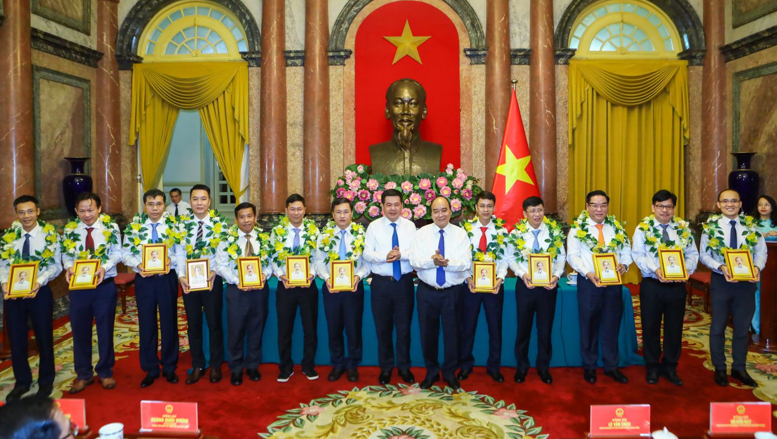 Chủ tịch nước Nguyễn Xuân Phúc cùng Đoàn đại biểu ngành Dầu khí. Ảnh: VPCTN