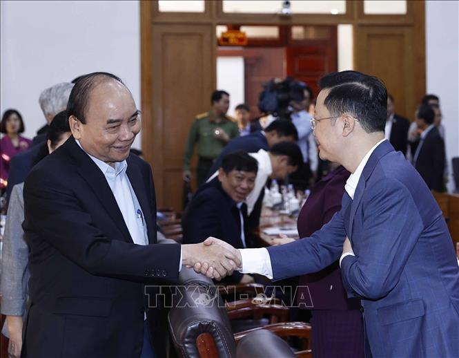 Chủ tịch nước Nguyễn Xuân Phúc với đại biểu dự buổi làm việc.