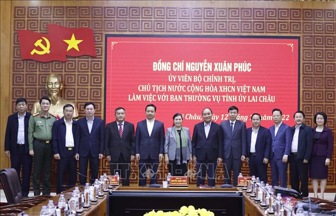 Phát biểu chỉ đạo tại buổi làm việc, Chủ tịch nước nêu rõ: Lai Châu là tỉnh có vị trí chiến lược đặc biệt quan trọng về kinh tế - xã hội, quốc phòng - an ninh và đối ngoại, đặc biệt là an ninh biên giới, an ninh nguồn nước, an ninh năng lượng, môi trường sinh thái. Sau gần 20 năm tách tỉnh, thành lập tỉnh Lai Châu, tuy còn nhiều khó khăn nhưng với quyết tâm cao, tỉnh đã có bước phát triển nhanh, toàn diện về kinh tế - xã hội. Một số điểm sáng là cơ cấu kinh tế chuyển dịch tích cực theo những lợi thế so sánh của địa phương, tốc độ tăng trưởng cao hơn hẳn mức bình quân cả nước (giai đoạn 2011 - 2020 gần 10 %/năm, riêng giai đoạn 2016 - 2020 tăng gần 12 %/năm). Các mặt văn hóa- xã hội, đời sống tinh thần của người dân đều khá tốt. Đáng chú ý, tỷ lệ giảm nghèo nhanh nhất trong cả nước từ mức hơn 58% năm 2006 giảm xuống còn chưa đến 28% năm 2021; hơn 40% xã đạt chuẩn nông thôn mới; có 106 sản phẩm được công nhận OCOP. Chủ tịch nước cũng đánh giá cao công tác xây dựng Đảng, xây dựng hệ thống chính trị, thực hiện Nghị quyết Đại hội XIII của các cấp uỷ Đảng trong tỉnh.