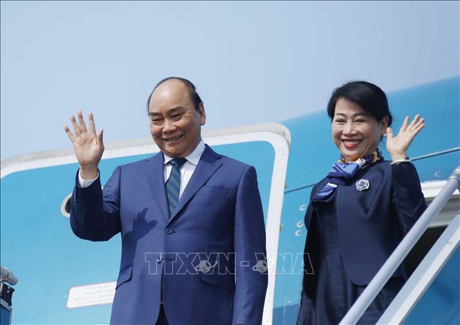 Chủ tịch nước Nguyễn Xuân Phúc và Phu nhân lên đường thăm cấp Nhà nước tới Cộng hoà Singapore. Ảnh: Thống Nhất/TTXVN