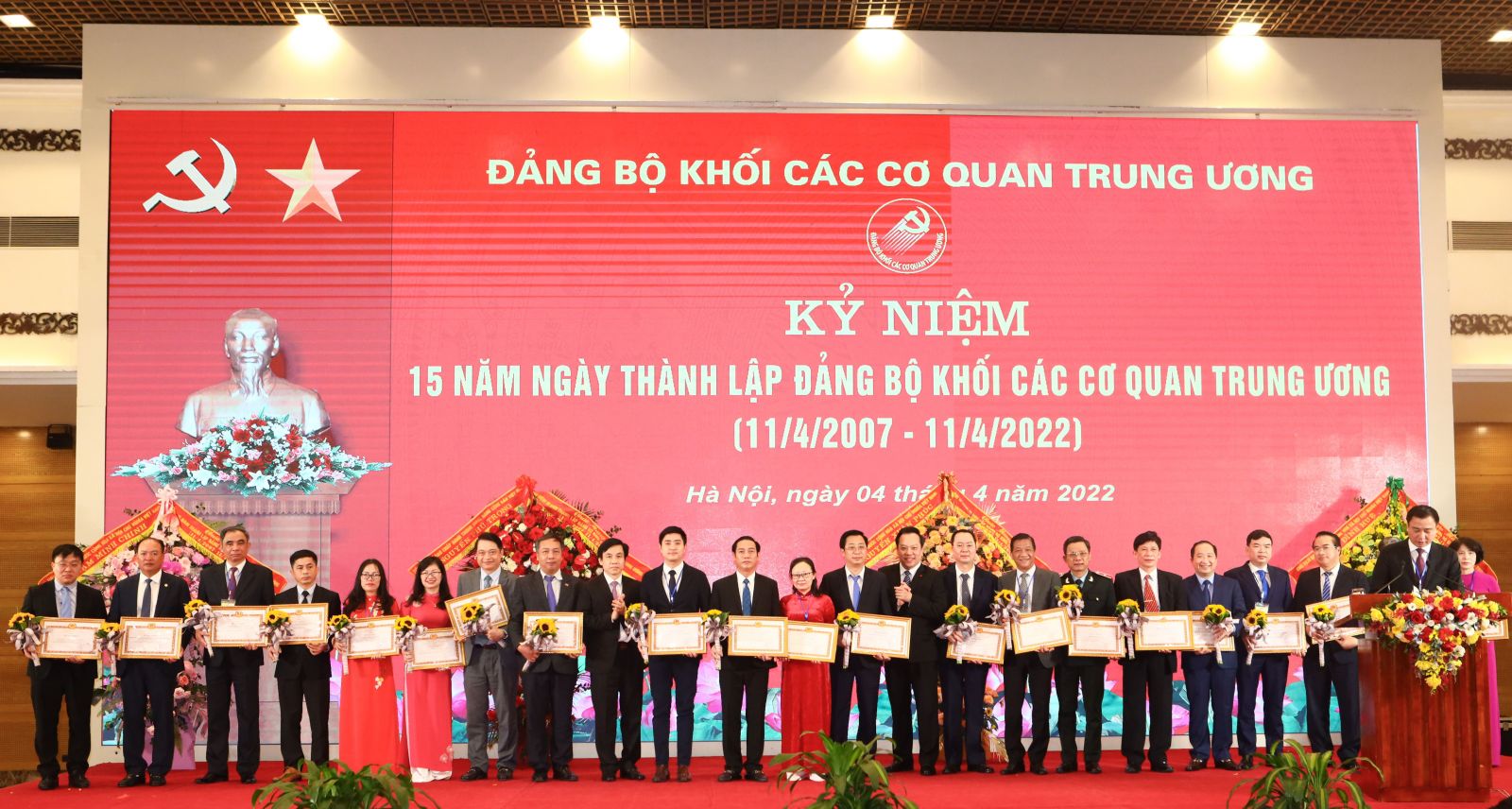 Cá nhân, tập thể có thành tích xuất sắc nhận Bằng khen của Đảng uỷ Khối các cơ quan Trung ương. Ảnh: VPCTN