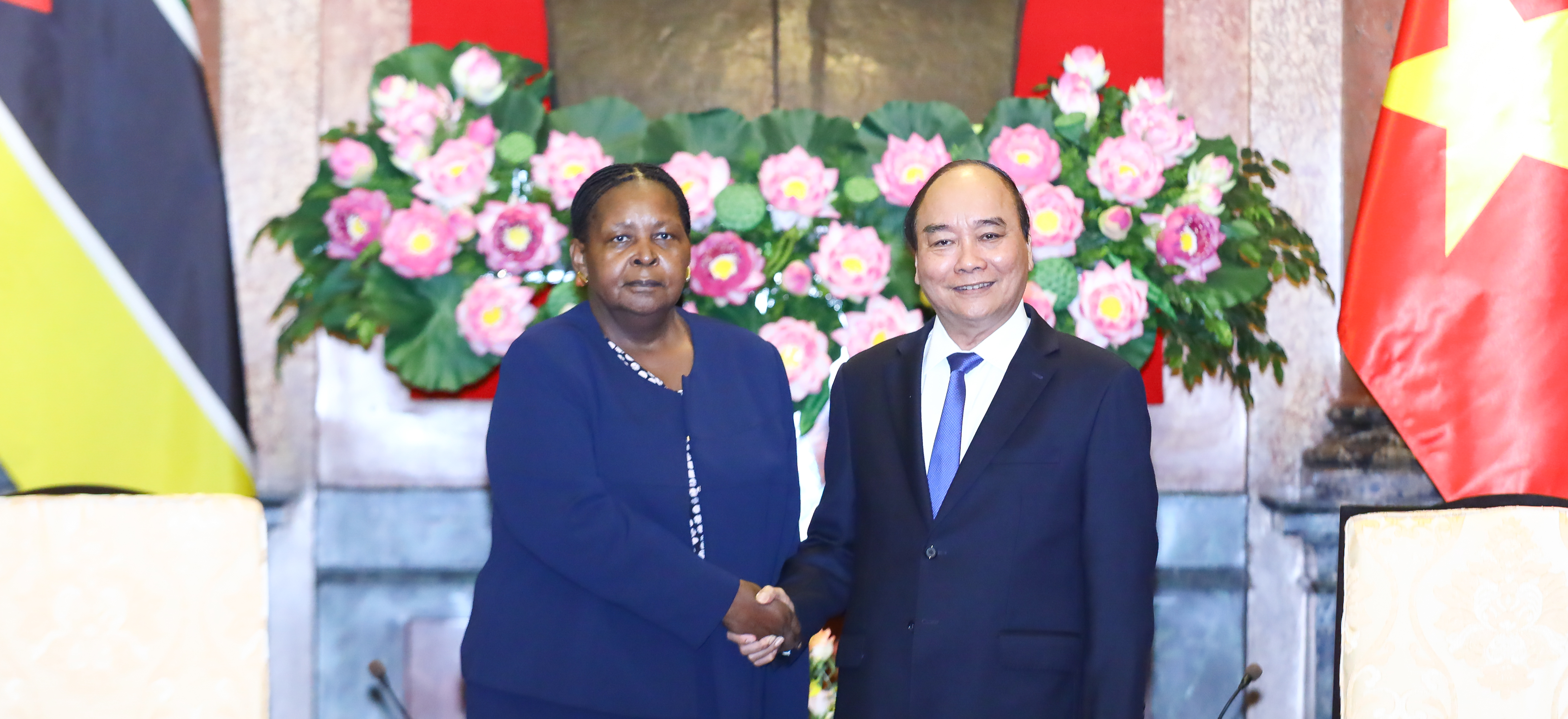 Chủ tịch nước Nguyễn Xuân Phúc tiếp Chủ tịch Quốc hội Cộng hòa Mozambique. Ảnh: VPCTN