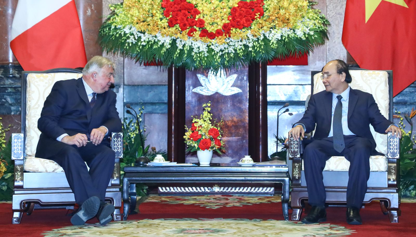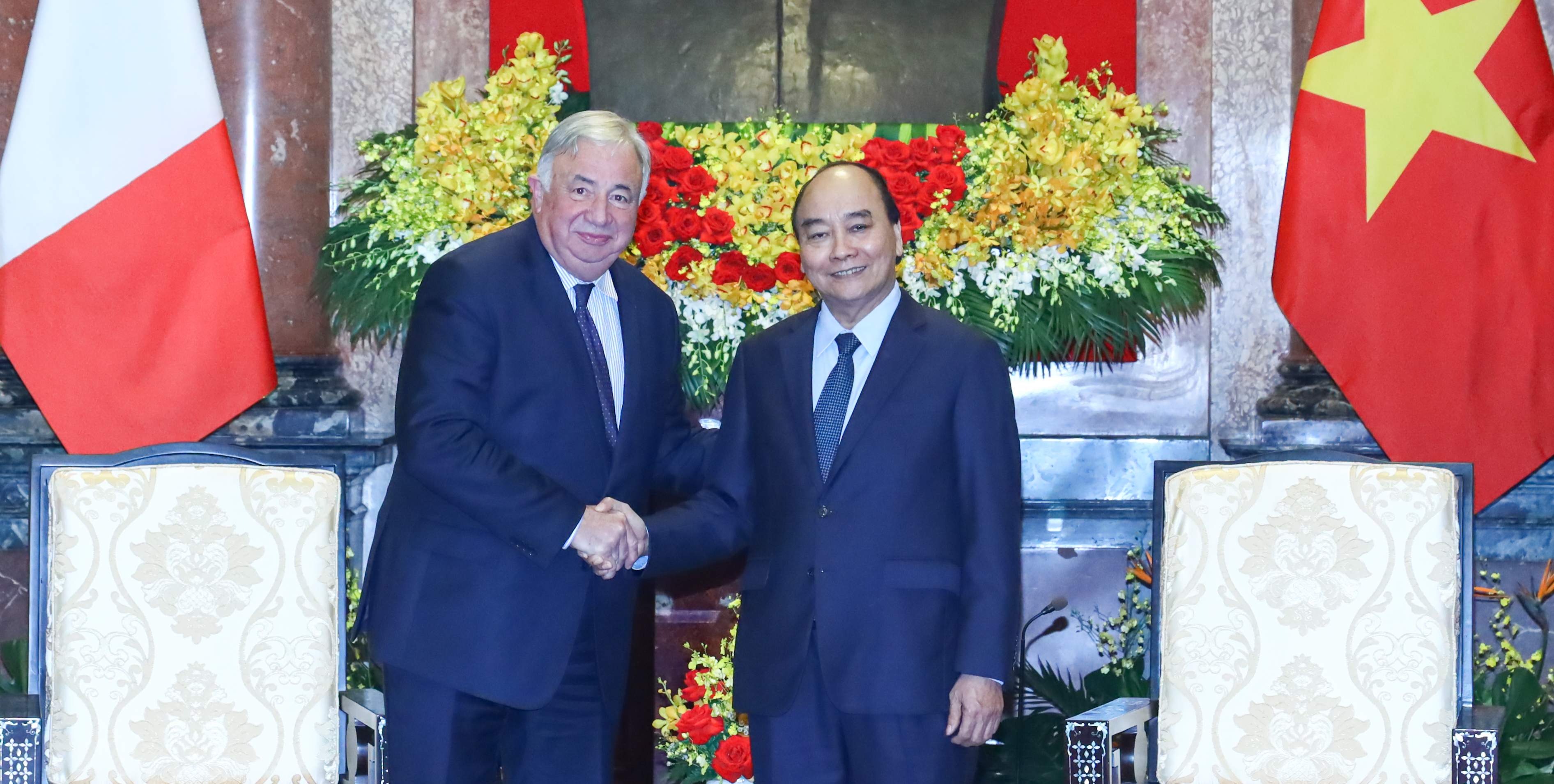 Phát biểu trong buổi tiếp Chủ tịch Thượng viện Pháp Gérard Larcher đang có chuyến thăm chính thức Việt Nam, Chủ tịch nước Nguyễn Xuân Phúc khẳng định, Việt Nam coi Pháp là đối tác quan trọng hàng đầu trong chính sách đối ngoại của Việt Nam. Hai nước có mối quan hệ lịch sử đặc biệt, gắn kết về mọi mặt, từ quan hệ chính trị, hợp tác nghị viện, cho đến kinh tế, văn hóa, giáo dục, y tế, con người.