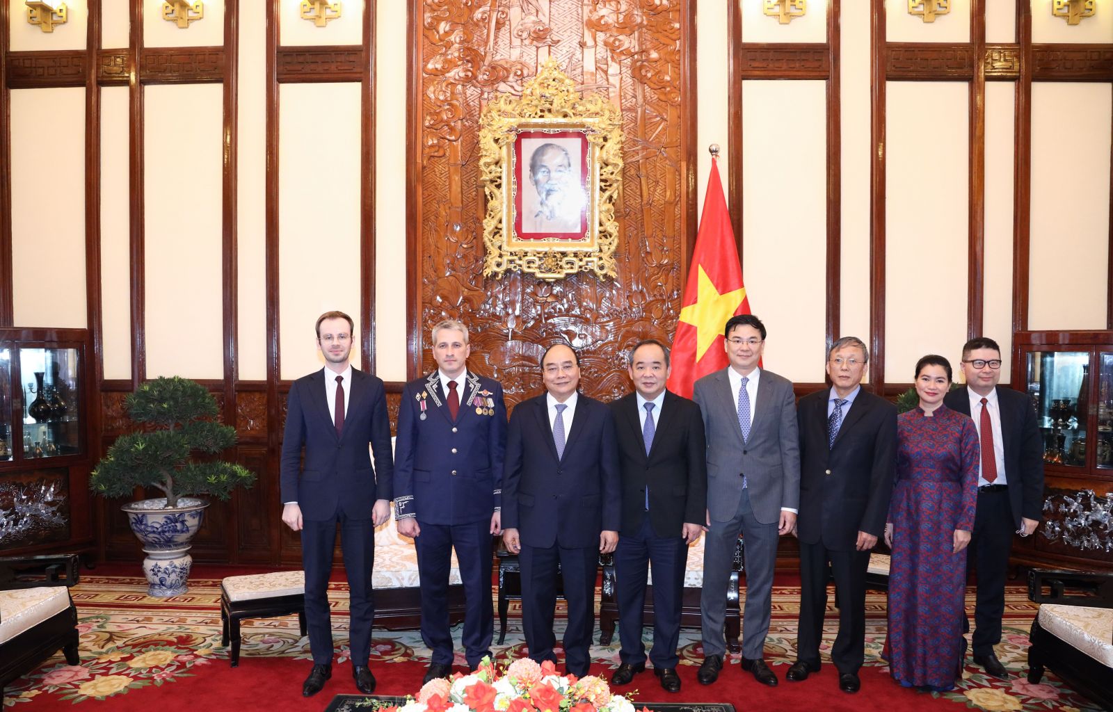 Chủ tịch nước Nguyễn Xuân Phúc chụp ảnh lưu niệm cùng Đại sứ Belarus và các đại biểu tham dự. Ảnh: VPCTN