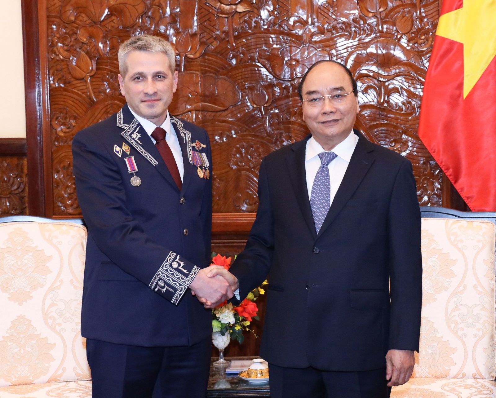 Chủ tịch nước Nguyễn Xuân Phúc tiếp Đại sứ Belarus tại Việt Nam Vladimir Baravikov. Ảnh: VPCTN