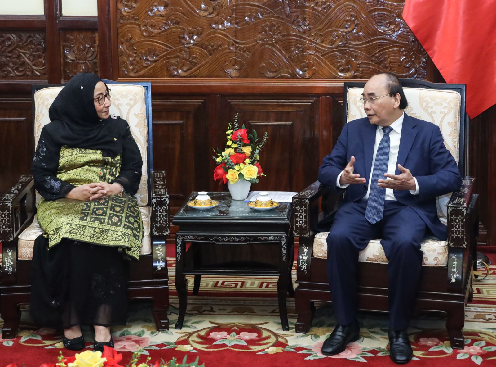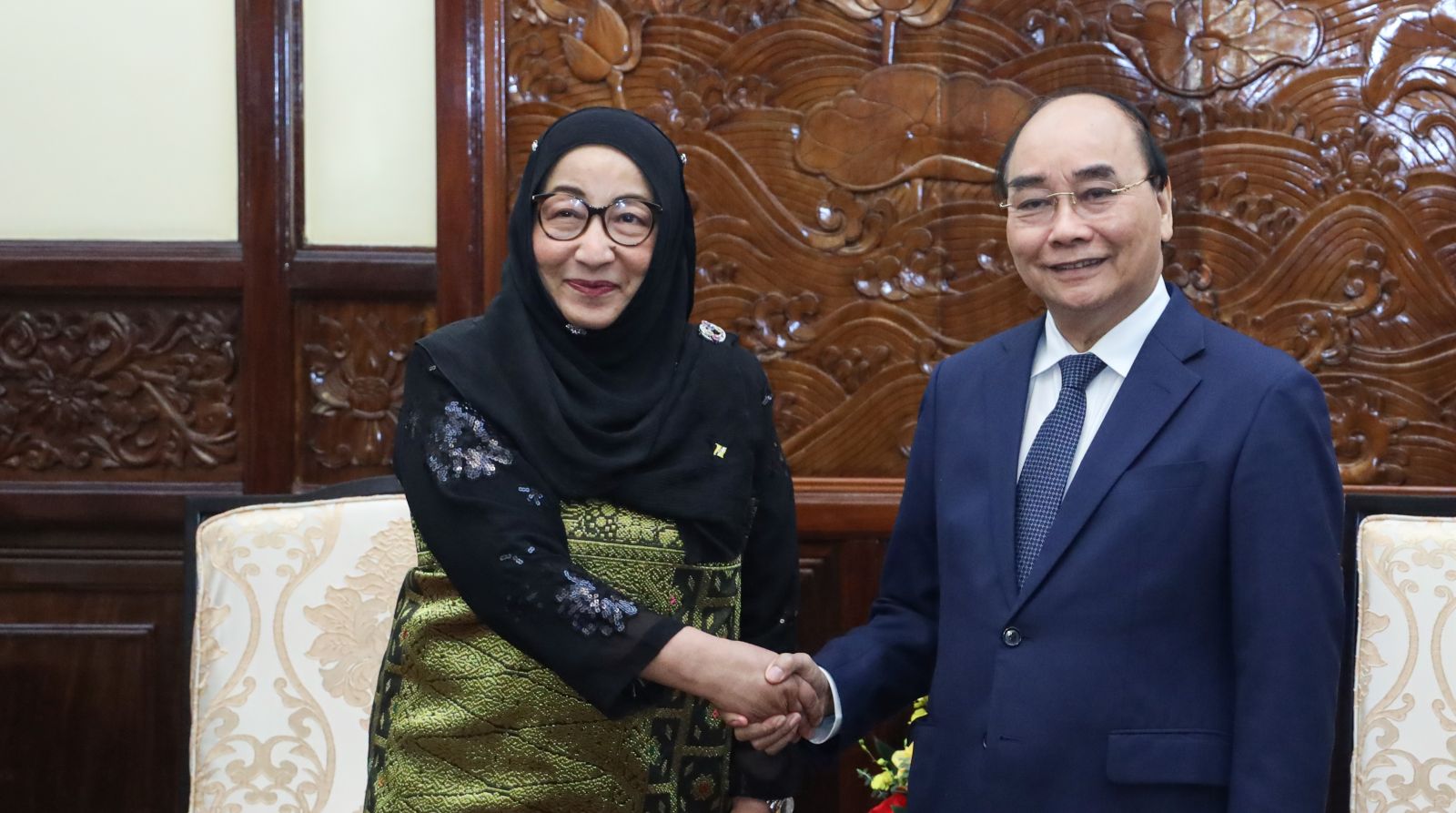 Chủ tịch nước Nguyễn Xuân Phúc tiếp Đại sứ Brunei Malai Halimah Malai Yussof. Ảnh: VPCTN