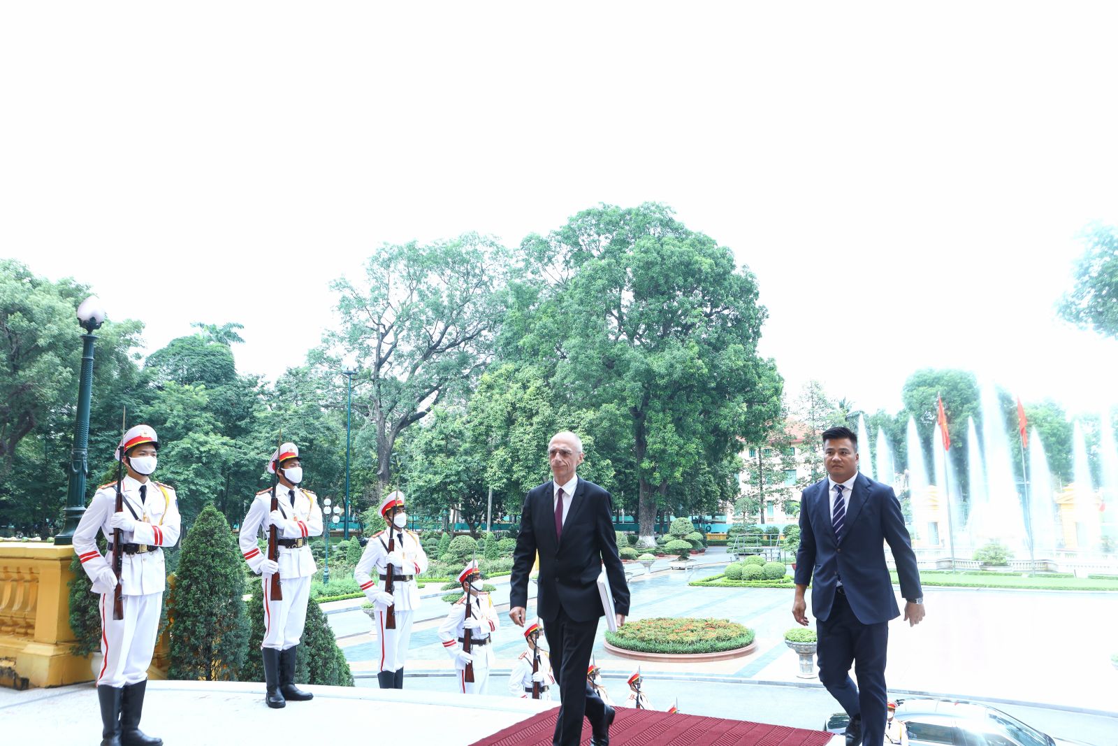 Đại sứ Đặc mệnh toàn quyền Cộng hoà Croatia tại Việt Nam Ivan Velimir Starcevic đến trình Quốc thư. Ảnh: VPCTN