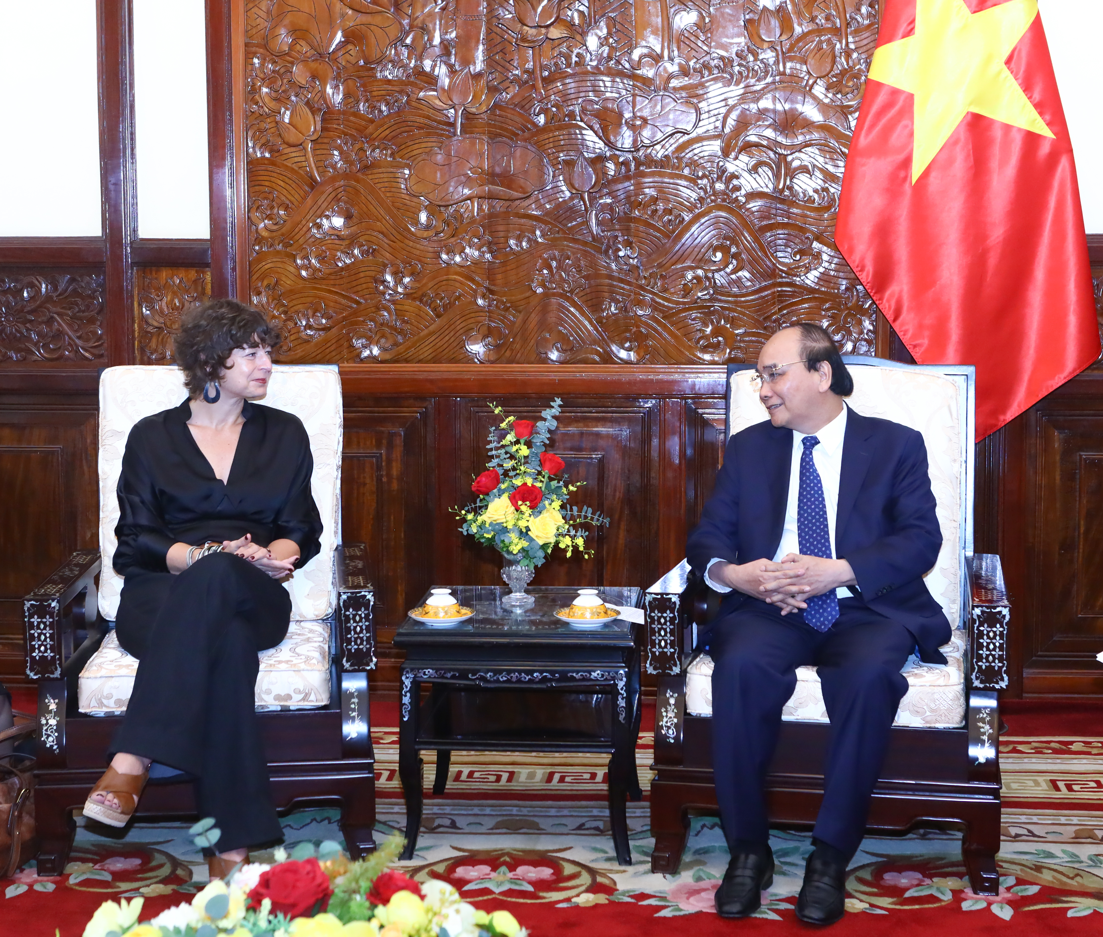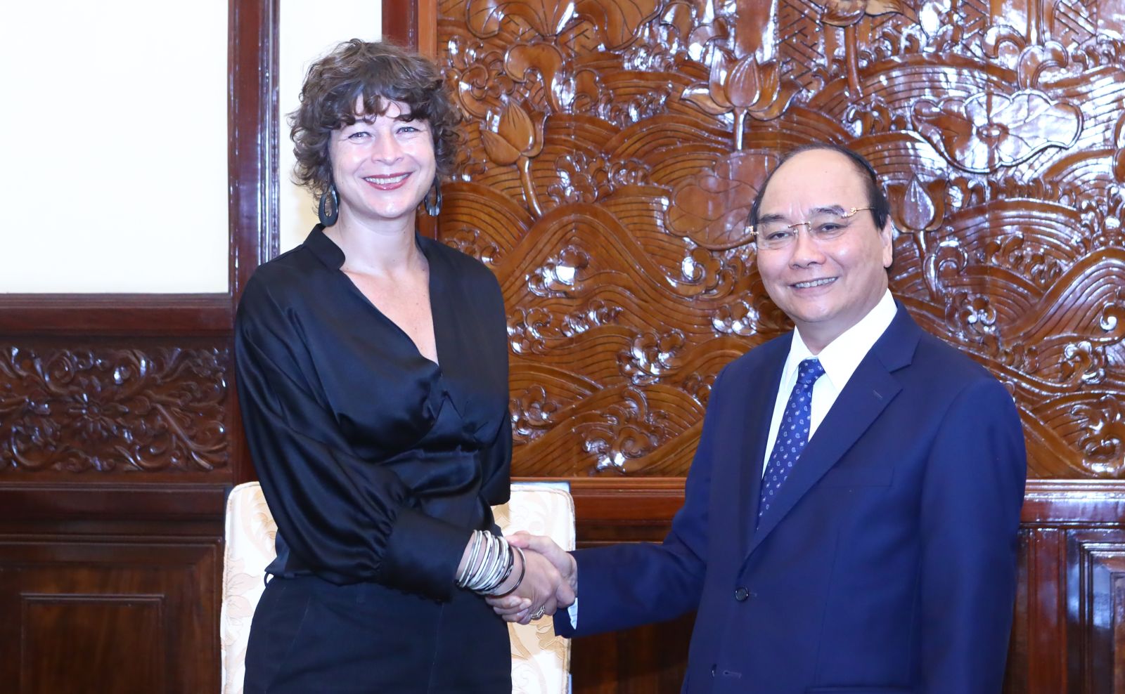 Chủ tịch nước Nguyễn Xuân Phúc tiếp Đại sứ Hà Lan Elsbeth Akkerman đến chào từ biệt kết thúc nhiệm kỳ công tác tại Việt Nam. Ảnh: VPCTN