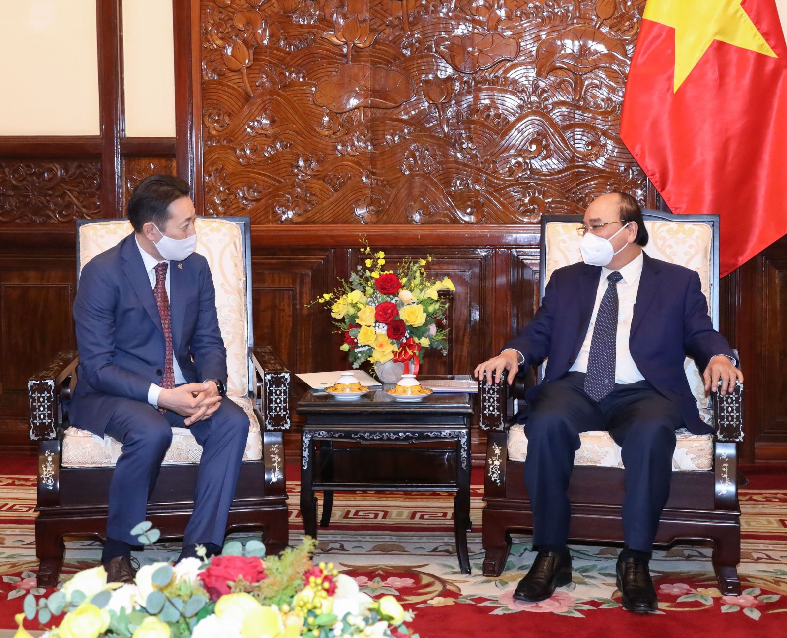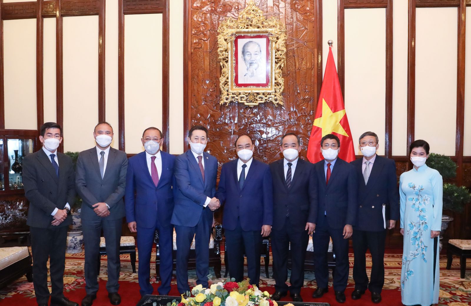 Chủ tịch nước Nguyễn Xuân Phúc tiếp Đại sứ Kairat Sarybay, Giám đốc Điều hành Ban Thư ký CICA. Ảnh: VPCTN