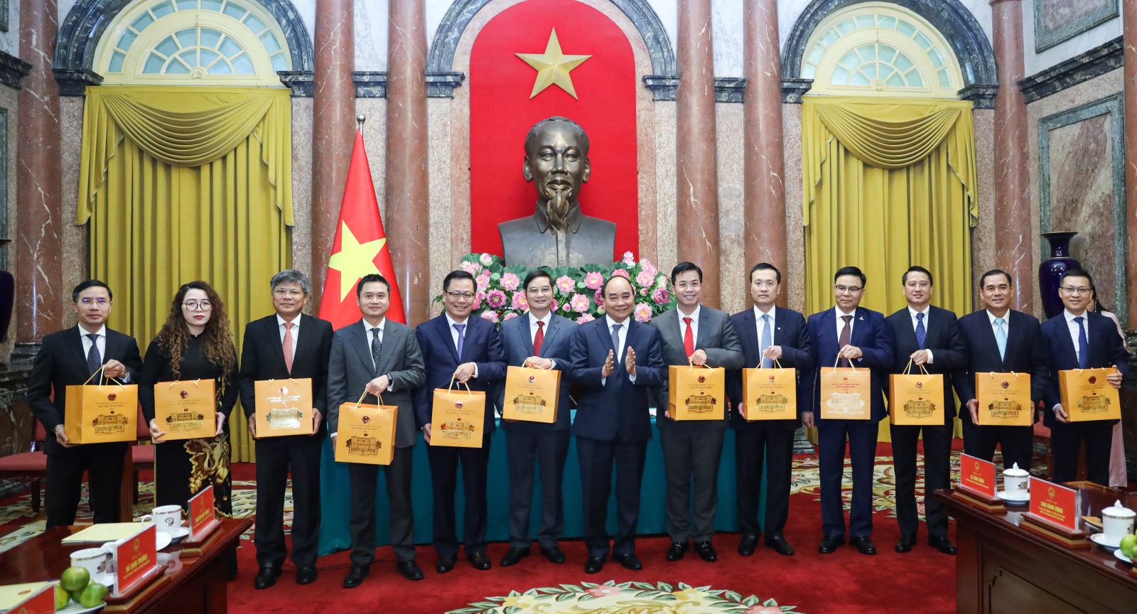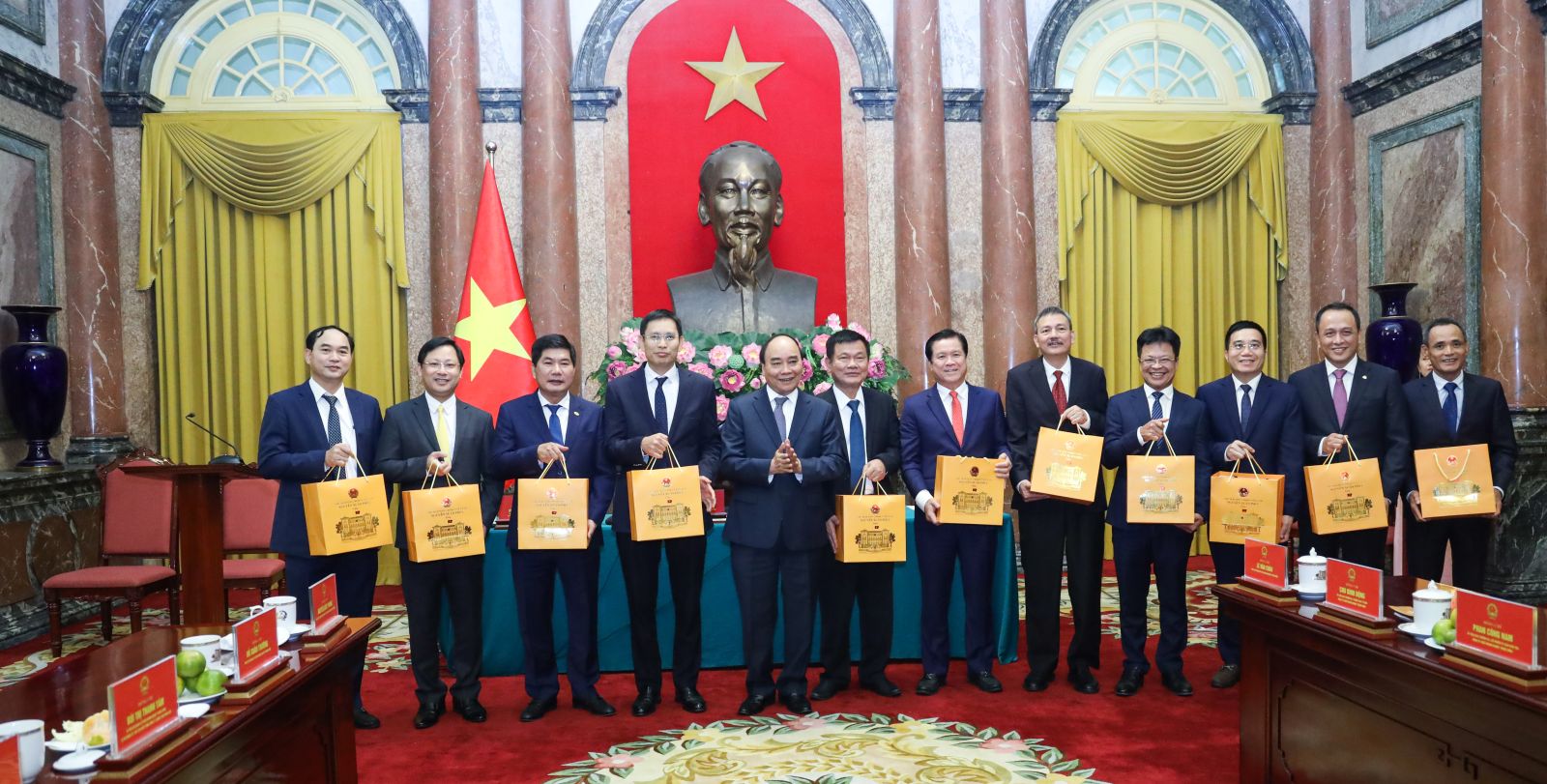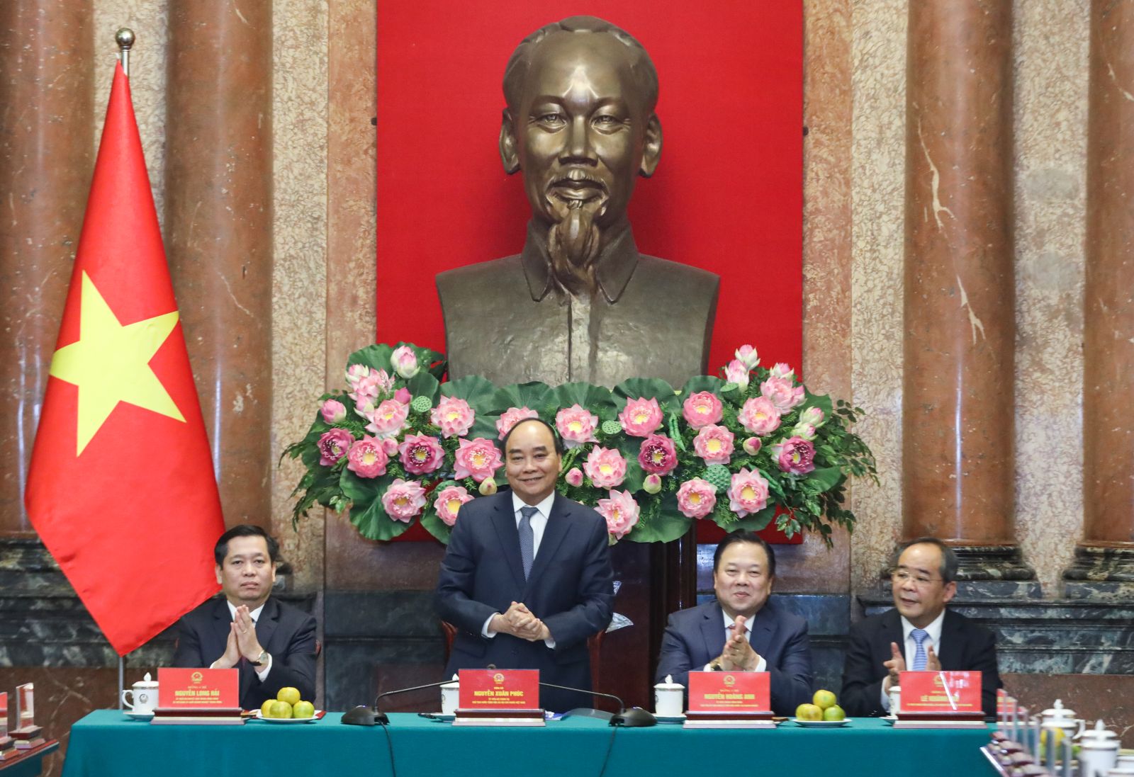 Chủ tịch nước Nguyễn Xuân Phúc với các đại biểu. Ảnh: VPCTN