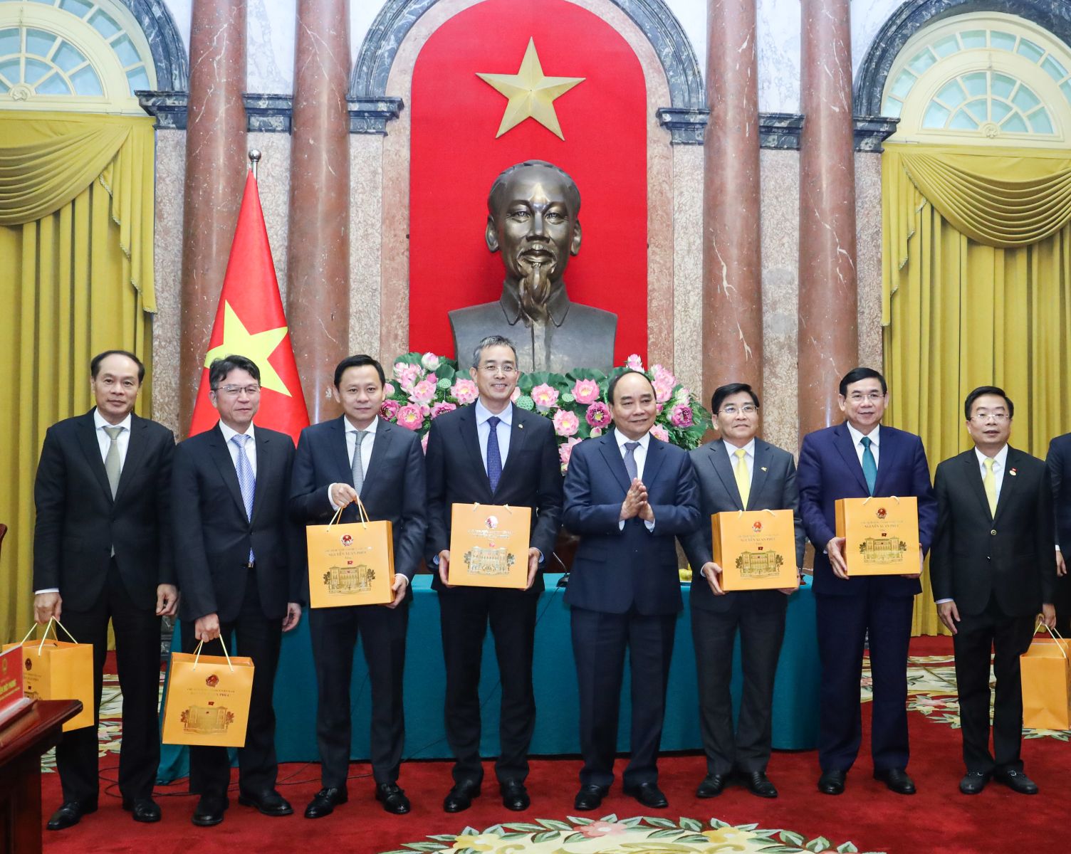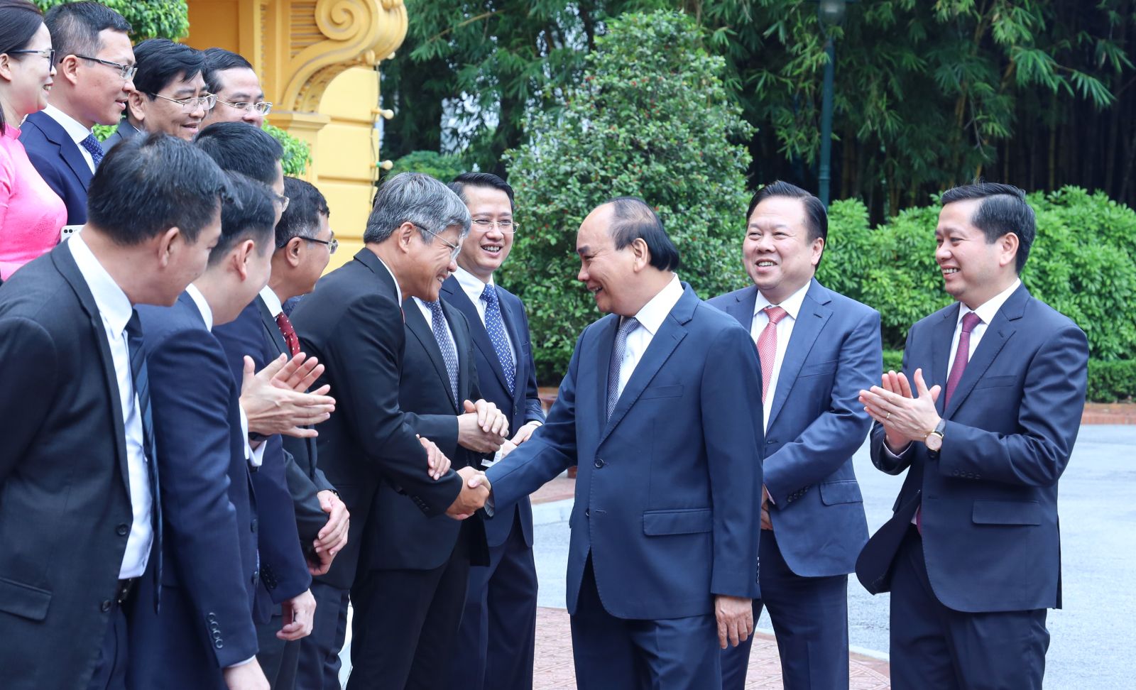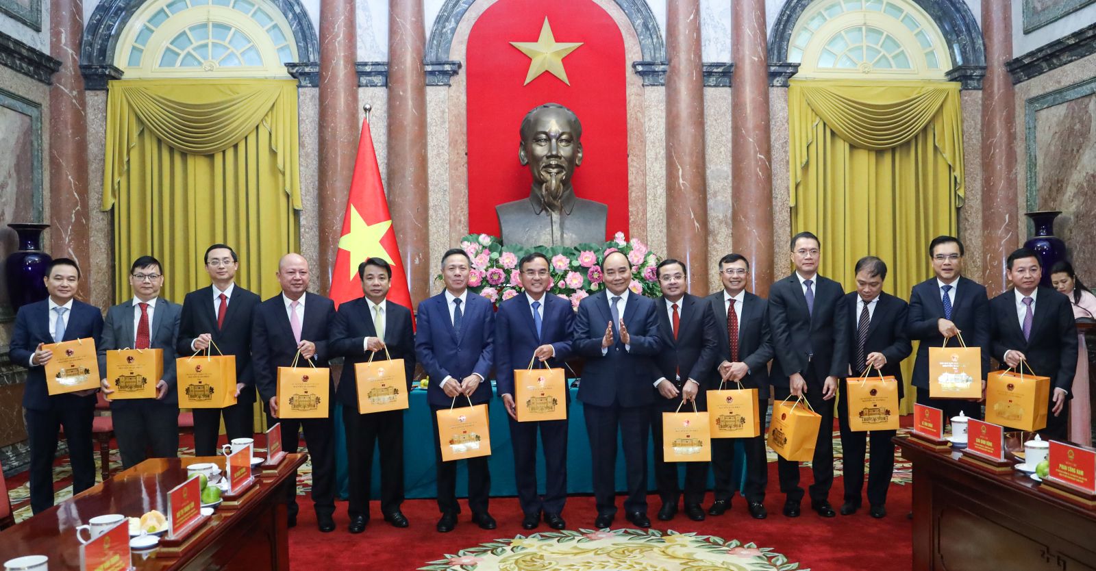 Chủ tịch nước Nguyễn Xuân Phúc với các đại biểu. Ảnh: VPCTN
