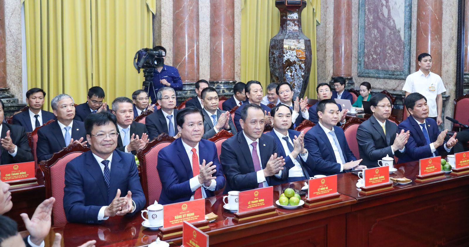 Chủ tịch nước gặp mặt đại biểu tiêu biểu thuộc Đảng bộ Khối Doanh nghiệp Trung ương. Ảnh: VPCTN