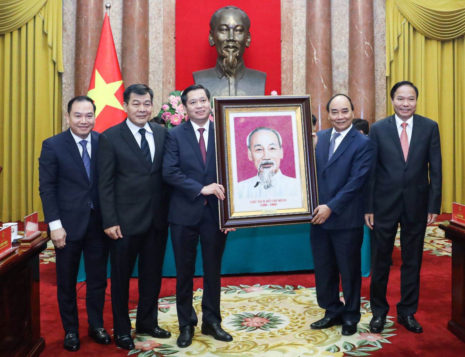Chủ tịch nước Nguyễn Xuân Phúc tặng tranh chân dung Chủ tịch Hồ Chí Minh cho Đảng bộ Khối Doanh nghiệp Trung ương