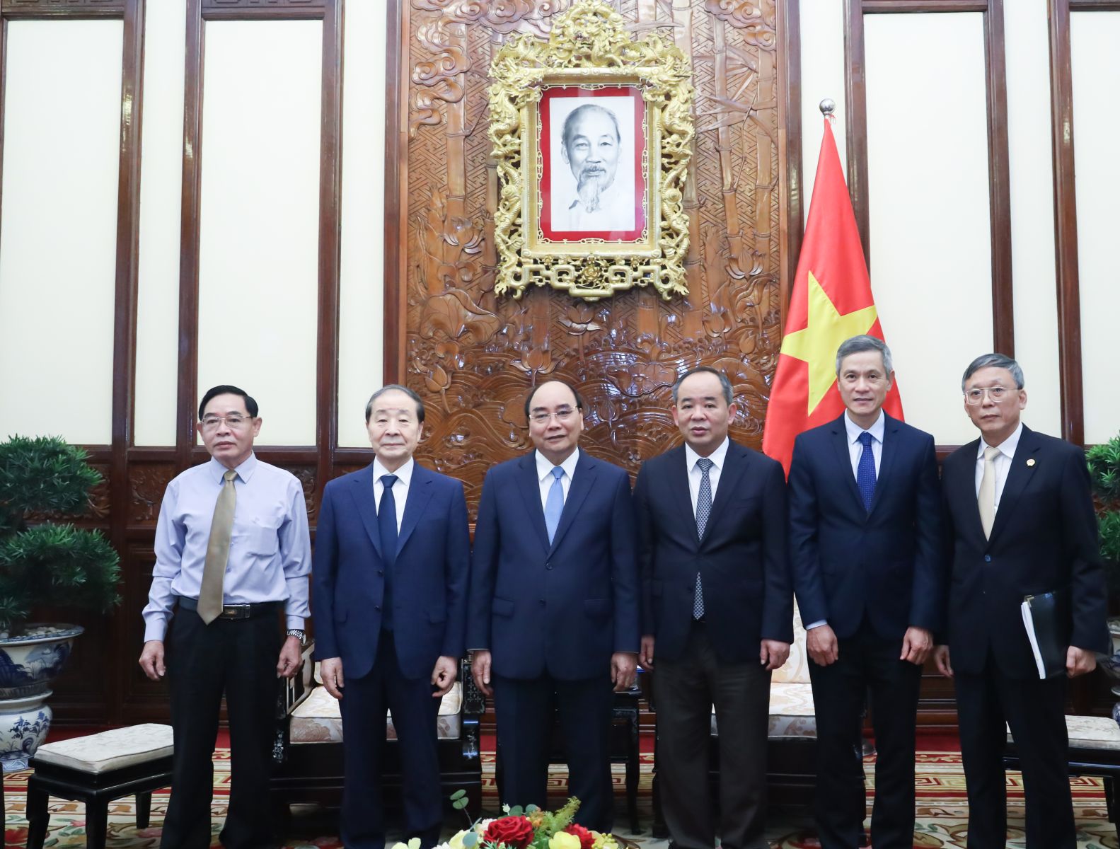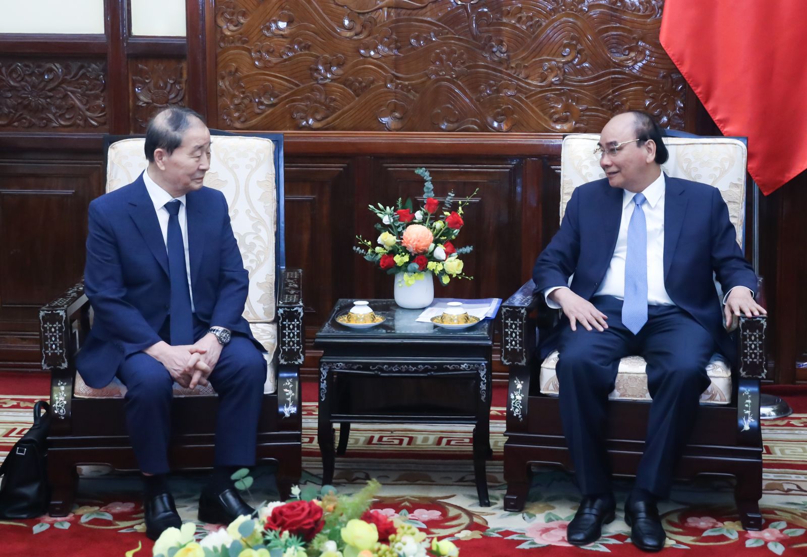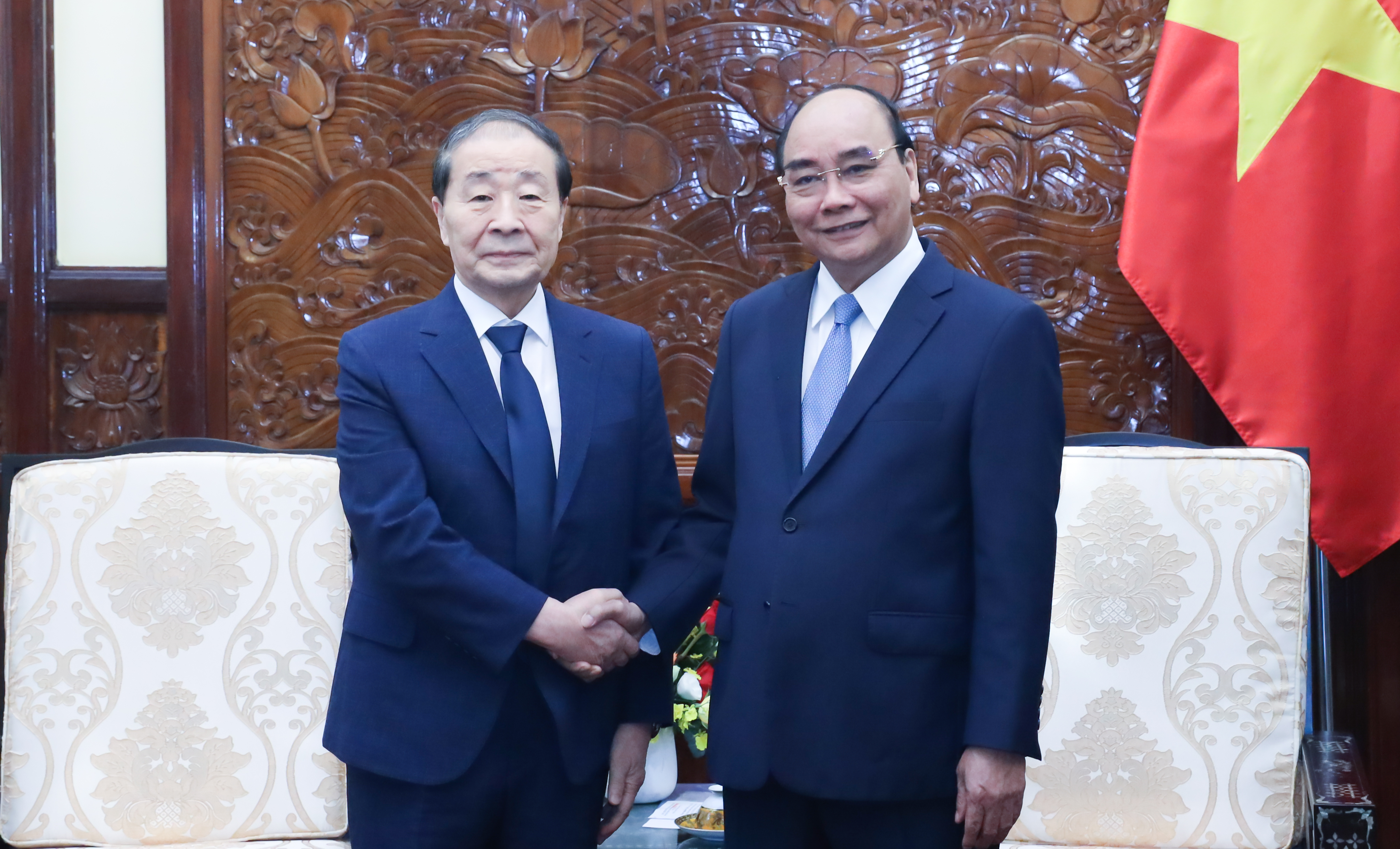 Chủ tịch nước Nguyễn Xuân Phúc tiếp nguyên Chủ tịch Hội Hữu nghị Hàn - Việt Choi Young Joo. Ảnh: VPCTN