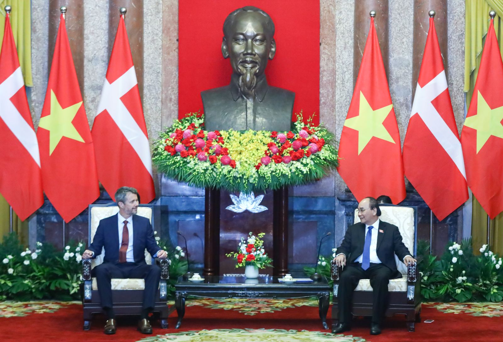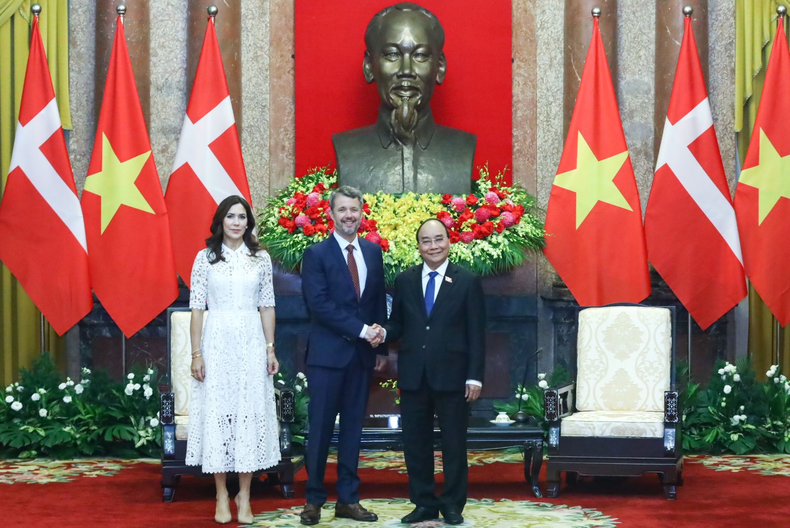 Chủ tịch nước Nguyễn Xuân Phúc nhiệt liệt chào mừng chuyến thăm chính thức Việt Nam của Thái tử kế vị Frederik và Công nương phu nhân. Chủ tịch nước vui mừng nhận thấy Việt Nam và Đan Mạch đã xây dựng mối quan hệ hữu nghị truyền thống, gắn bó từ nhiều năm qua; bày tỏ trân trọng tình cảm đặc biệt mà Hoàng gia, Chính phủ, người dân Đan Mạch dành cho Việt Nam trong công cuộc xây dựng và phát triển đất nước. Nhân dịp này, Chủ tịch nước Nguyễn Xuân Phúc gửi lời thăm hỏi của Lãnh đạo Đảng, Nhà nước và Chính phủ Việt Nam tới Nữ hoàng Margrethe II; đồng thời chúc mừng những thành tựu phát triển của đất nước Đan Mạch, một trong các quốc gia đứng đầu thế giới về tăng trưởng xanh và đổi mới sáng tạo.