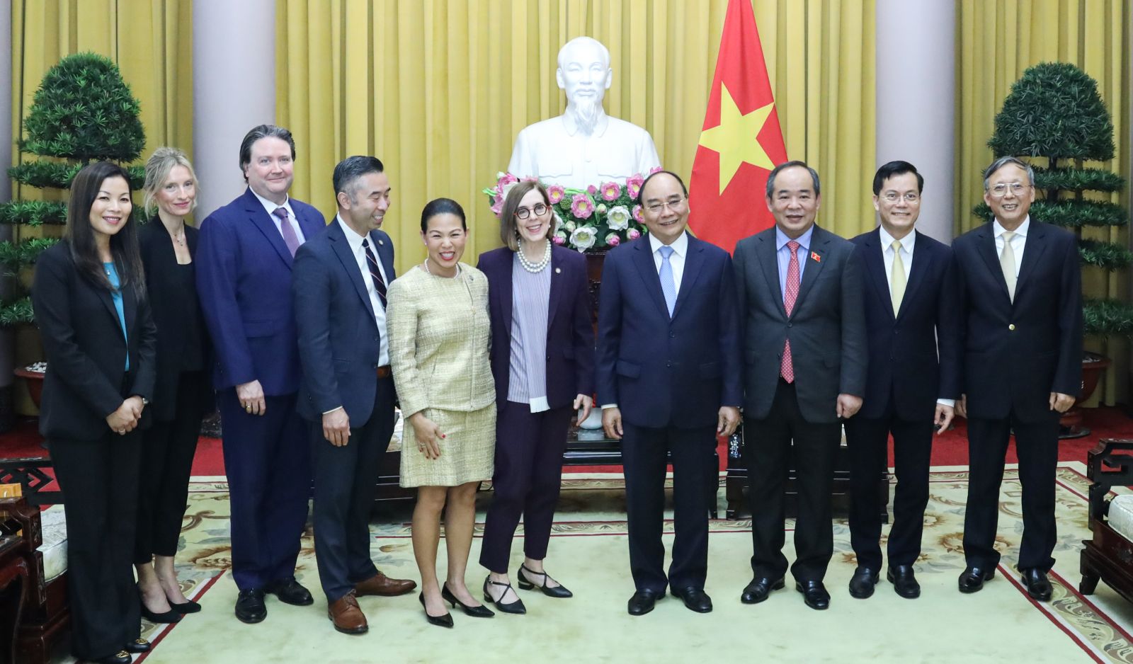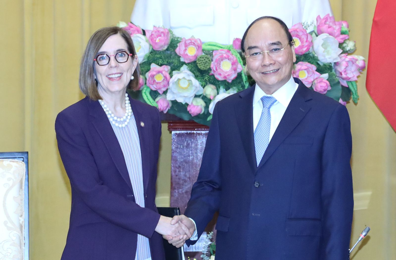 Thống đốc bang Oregon trân trọng cảm ơn Chủ tịch nước Nguyễn Xuân Phúc dành thời gian tiếp; bày tỏ vui mừng trước sự phát triển tốt đẹp của mối quan hệ hai nước Việt Nam-Hoa Kỳ.
