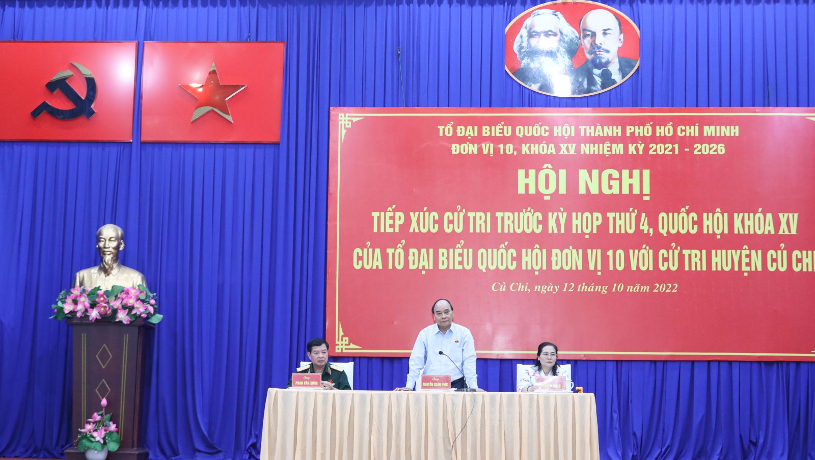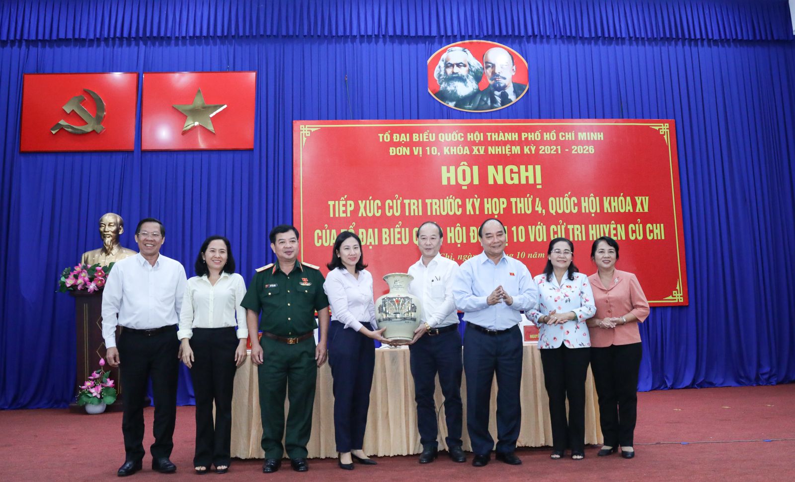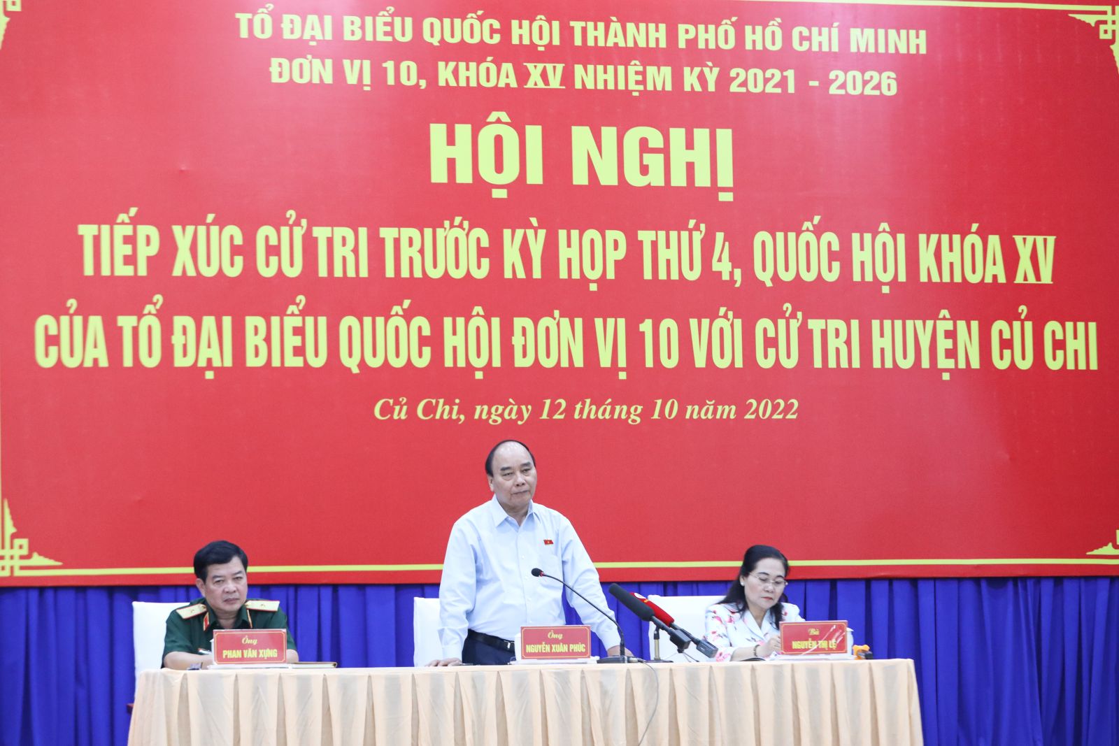 Chủ tịch nước Nguyễn Xuân Phúc tiếp xúc cử tri tại Củ Chi. Ảnh: VPCTN