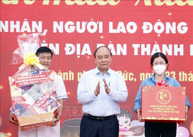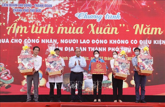 Chủ tịch nước đề nghị Thành phố Hồ Chí Minh, thành phố Thủ Đức tiếp tục rà soát, làm tốt hơn nữa việc chăm lo Tết cho người dân, nhất là những người chịu tác động nặng nề do đại dịch COVID-19; thực hiện hiệu quả các biện pháp phòng, chống dịch COVID-19, đảm bảo cuộc sống bình yên của người dân. Các doanh nghiệp bên cạnh việc đẩy mạnh sản xuất kinh doanh, quan tâm hơn nữa đến đời sống, thu nhập của người lao động; sớm bắt tay vào sản xuất ngay sau Tết.