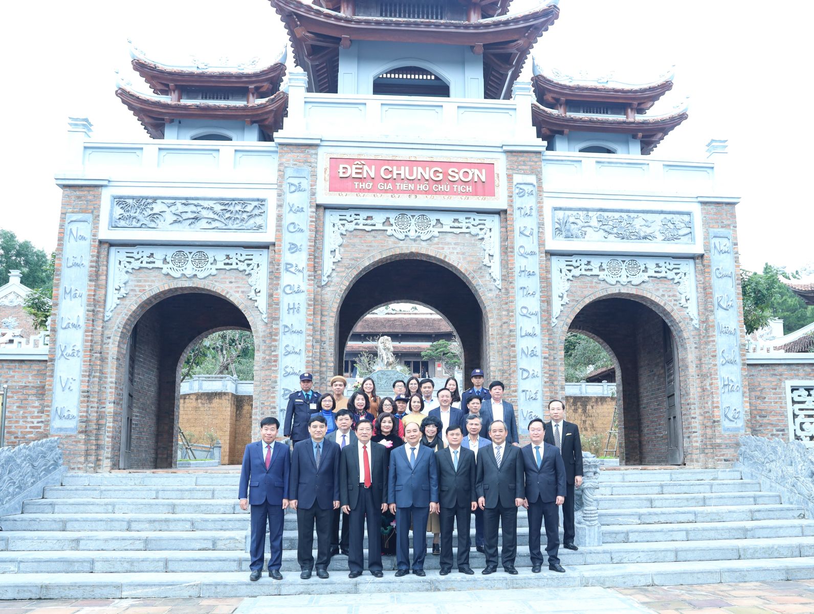 Chủ tịch nước Nguyễn Xuân Phúc và đoàn công tác tại Đền Chung Sơn - Đền thờ gia tiên Bác Hồ. Ảnh: VPCTN