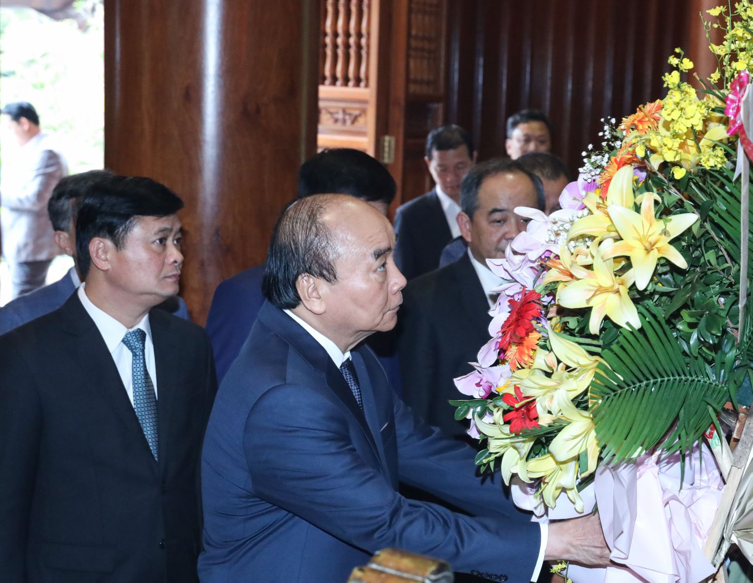Chủ tịch nước Nguyễn Xuân Phúc dâng hương, dâng hoa tưởng niệm Chủ tịch Hồ Chí Minh tại Khu di tích quốc gia đặc biệt Kim Liên. Ảnh: VPCTN