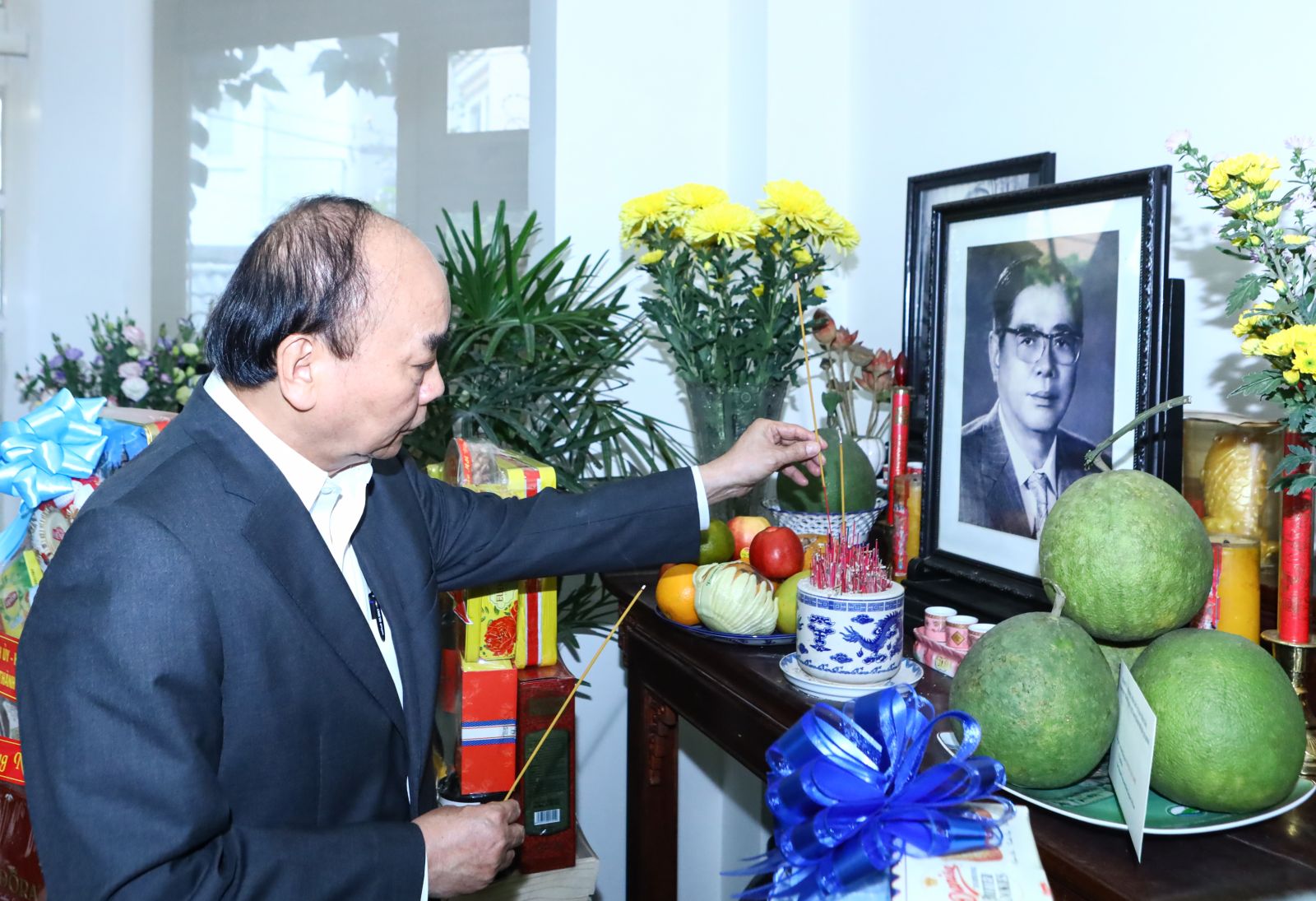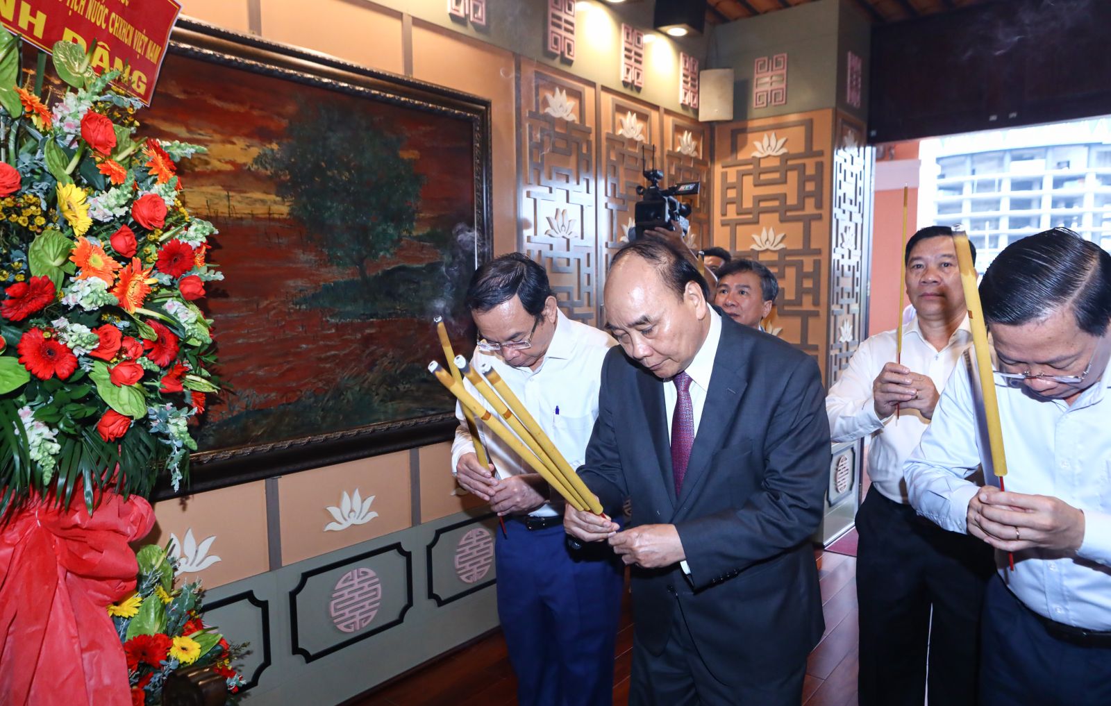 Chủ tịch nước Nguyễn Xuân Phúc dâng hương tưởng nhớ Chủ tịch Hội đồng Nhà nước Võ Chí Công. Ảnh: VPCTN
