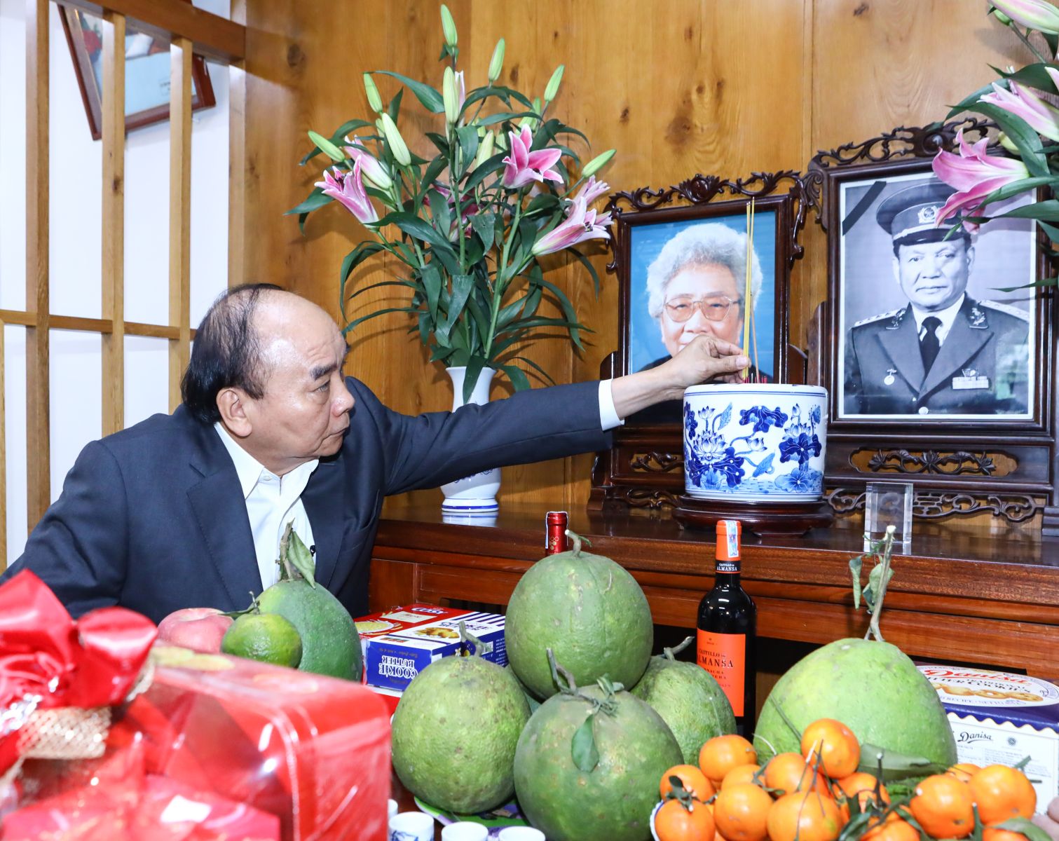 Chủ tịch nước Nguyễn Xuân Phúc dâng hương tưởng nhớ Đại tướng, Chủ tịch nước Lê Đức Anh. Ảnh: VPCTN