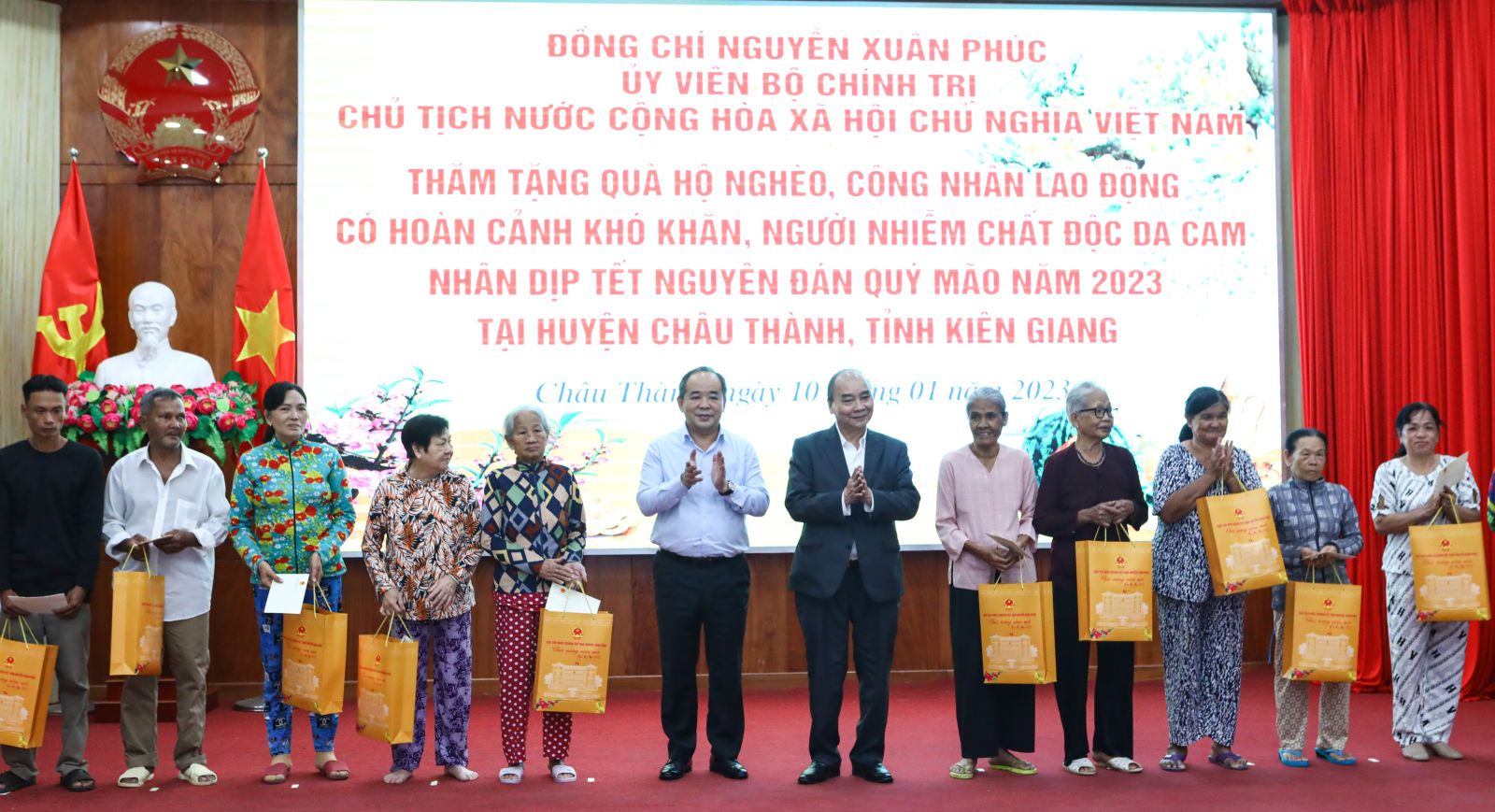 Ân cần gửi lời thăm hỏi, lời chúc tốt đẹp của Lãnh đạo Đảng, Nhà nước, MTTQ Việt Nam đến bà con nhân dân huyện Châu Thành, Chủ tịch nước Nguyễn Xuân Phúc chia sẻ với bà con về những khó khăn trong cuộc sống. Chủ tịch nước nhấn mạnh yêu cầu của Đảng, Nhà nước đảm bảo cho mọi người dân, nhất là người nghèo, người có hoàn cảnh khó khăn vui Xuân, đón Tết; đồng thời yêu cầu chính quyền các cấp, tỉnh Kiên Giang, huyện Châu Thành thực hiện kiểm tra, giám sát việc chăm lo Tết cho người dân.