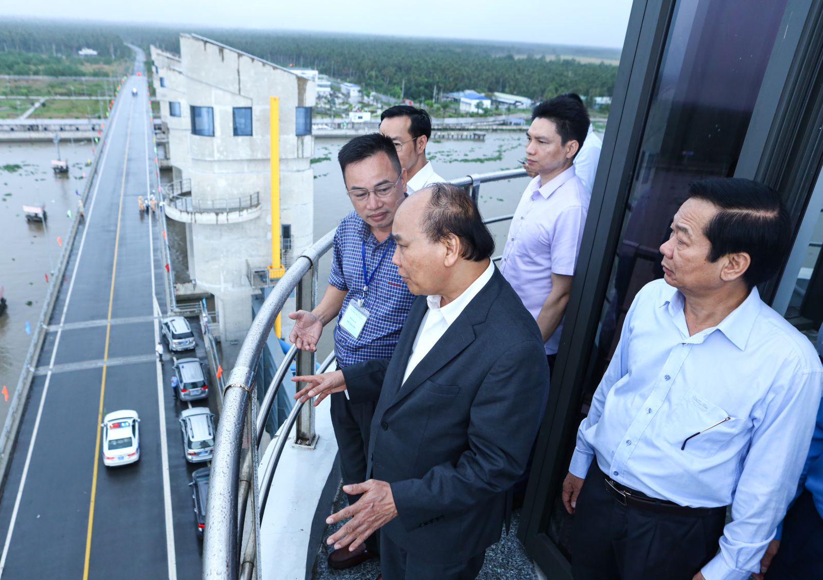 Chủ tịch nước Nguyễn Xuân Phúc khảo sát công trình Cống Cái Lớn. Ảnh: VPCTN