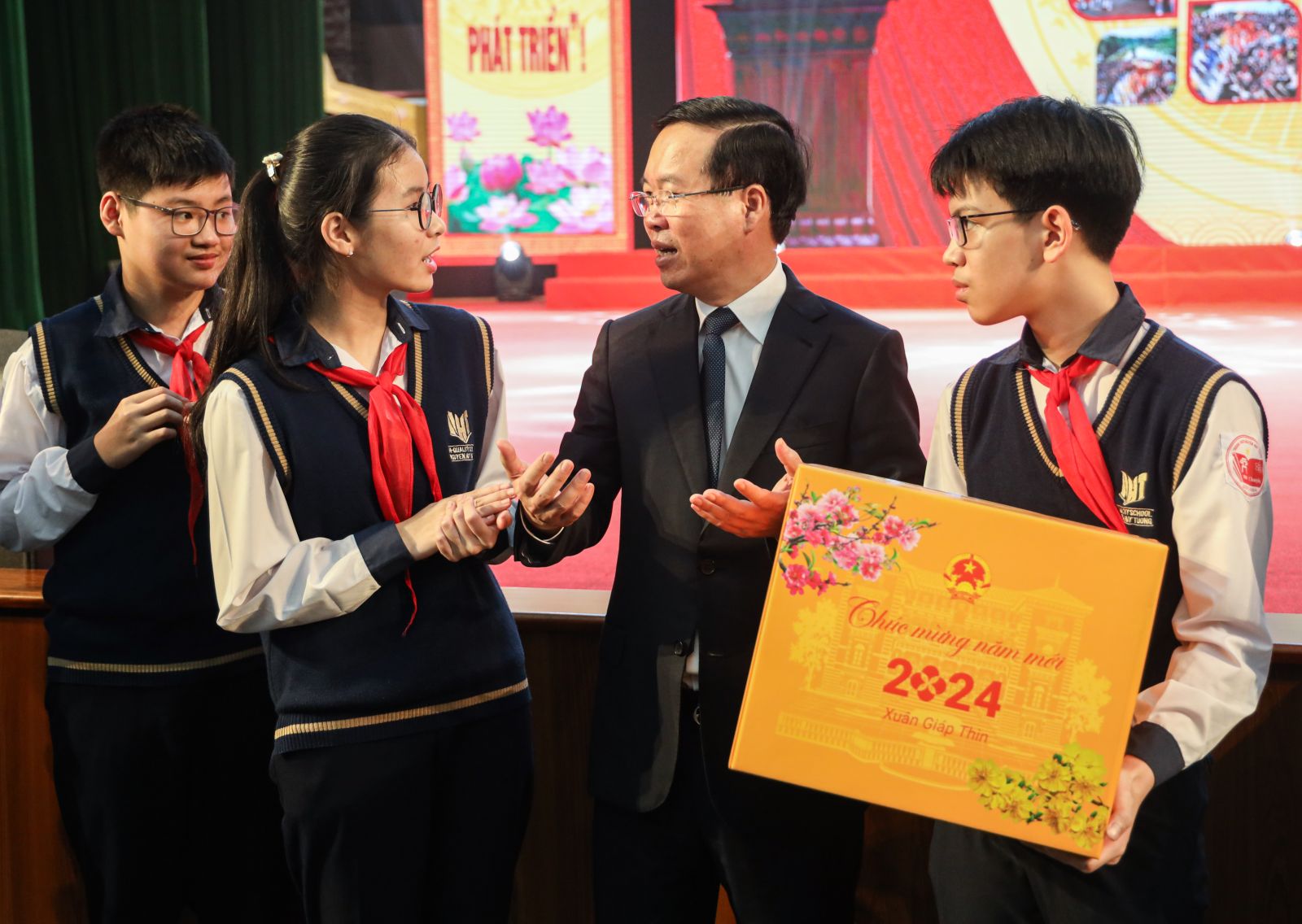 *Thăm Trung tâm Văn hóa, Thông tin và Thể thao huyện Đông Anh, trò chuyện với các em học sinh của huyện đang tham gia Chương trình giáo dục truyền thống năm 2024 tại đây, Chủ tịch nước nhắc lại nội dung Thư gửi các em học sinh, sinh viên, các cô giáo, thầy giáo, cán bộ quản lý, người lao động ngành Giáo dục và các bậc phụ huynh nhân dịp Khai giảng năm học 2023 - 2024: “Tôi nhìn thấy tương lai tươi sáng của Tổ quốc mình trong sức sống căng tràn và trong những ước mơ, hoài bão cao đẹp của các em”.