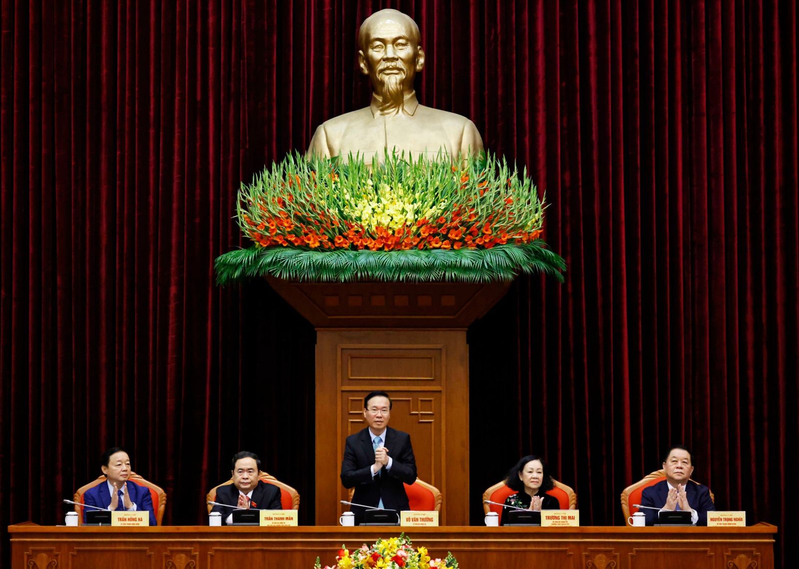 Chủ tịch nước Võ Văn Thưởng cùng các đồng chí lãnh đạo Đảng, Nhà nước chủ trì Hội nghị.