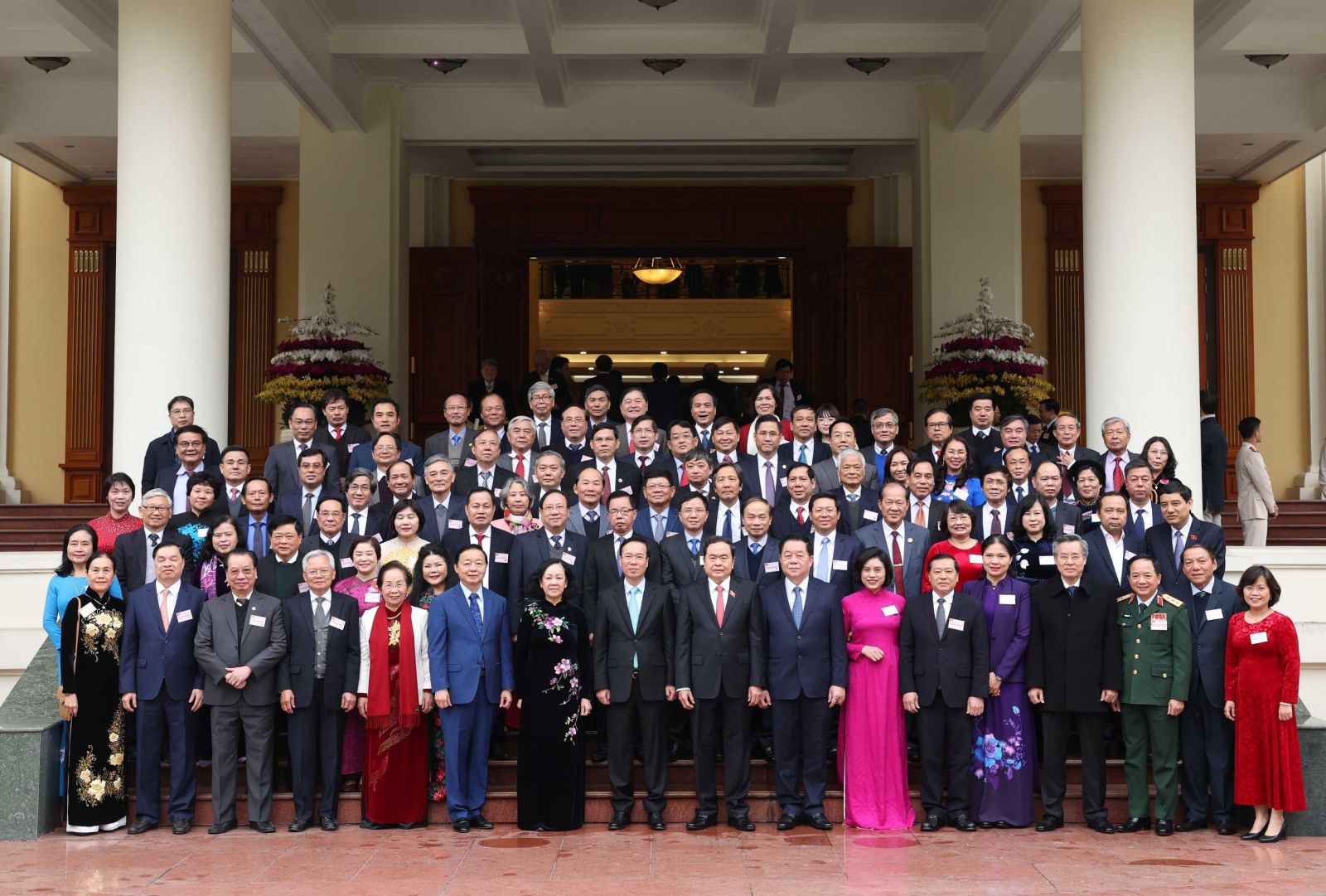Đề cập đến thành tựu quan trọng của đất nước trong năm 2023 dưới sự lãnh đạo đúng đắn, sáng suốt của Đảng, đứng đầu là Tổng Bí thư Nguyễn Phú Trọng, Chủ tịch nước nêu rõ, trong các thành quả đáng tự hào ấy có sự đóng góp quý báu, rất quan trọng của đội ngũ trí thức, nhà khoa học, văn nghệ sĩ trên nhiều lĩnh vực.