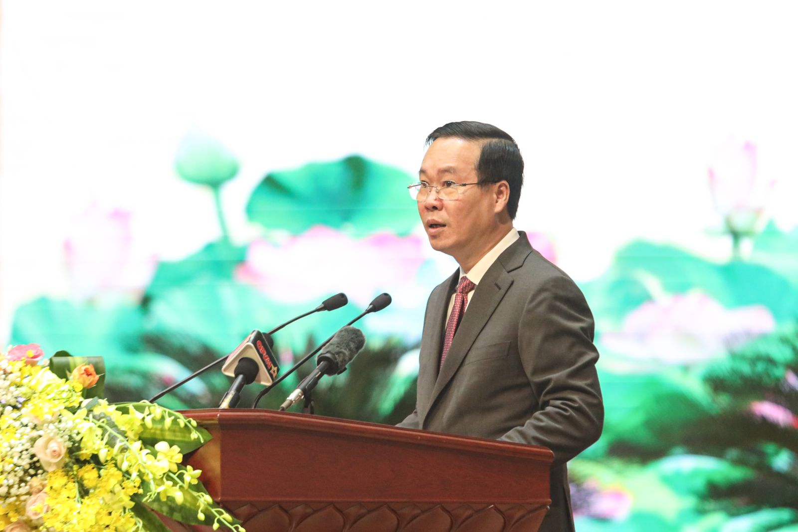 Chủ tịch nước Võ Văn Thưởng phát biểu chỉ đạo. Ảnh: VPCTN
