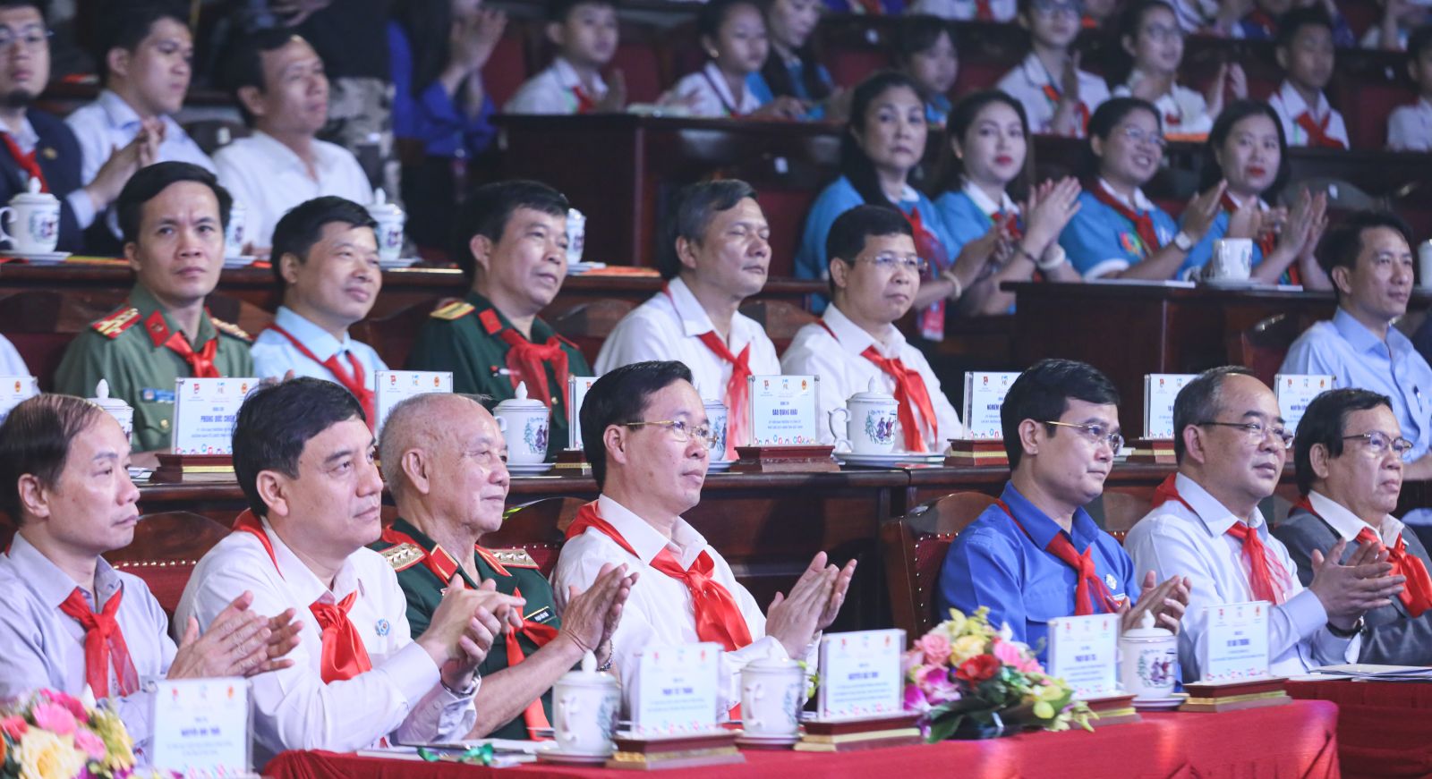 Chủ tịch nước Võ Văn Thưởng và các đại biểu dự Lễ kỷ niệm 60 năm phong trào 'Nghìn việc tốt'. Ảnh: VPCTN