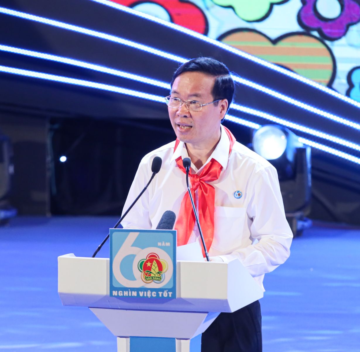 Tặng quà 263 “dũng sĩ nghìn việc tốt” tiêu biểu đại diện 1000 Dũng sĩ Nghìn việc tốt toàn quốc về dự chương trình, Chủ tịch nước Võ Văn Thưởng mong muốn các cháu thiếu nhi tiếp tục kế thừa và phát huy truyền thống tốt đẹp của thế hệ cha anh, luôn đoàn kết, chăm ngoan, phấn đấu nhiều hơn nữa trong học tập, rèn luyện với tinh thần “Tuổi nhỏ chí lớn”, “Tuổi các cháu nhỏ thì các cháu làm những công việc nhỏ. Nhiều công việc nhỏ cộng lại thành công việc to”, thi đua làm theo 5 Điều Bác Hồ dạy, tiếp tục tiến lên, làm rạng danh đất nước Việt Nam, xứng đáng là cháu ngoan của Bác Hồ kính yêu.