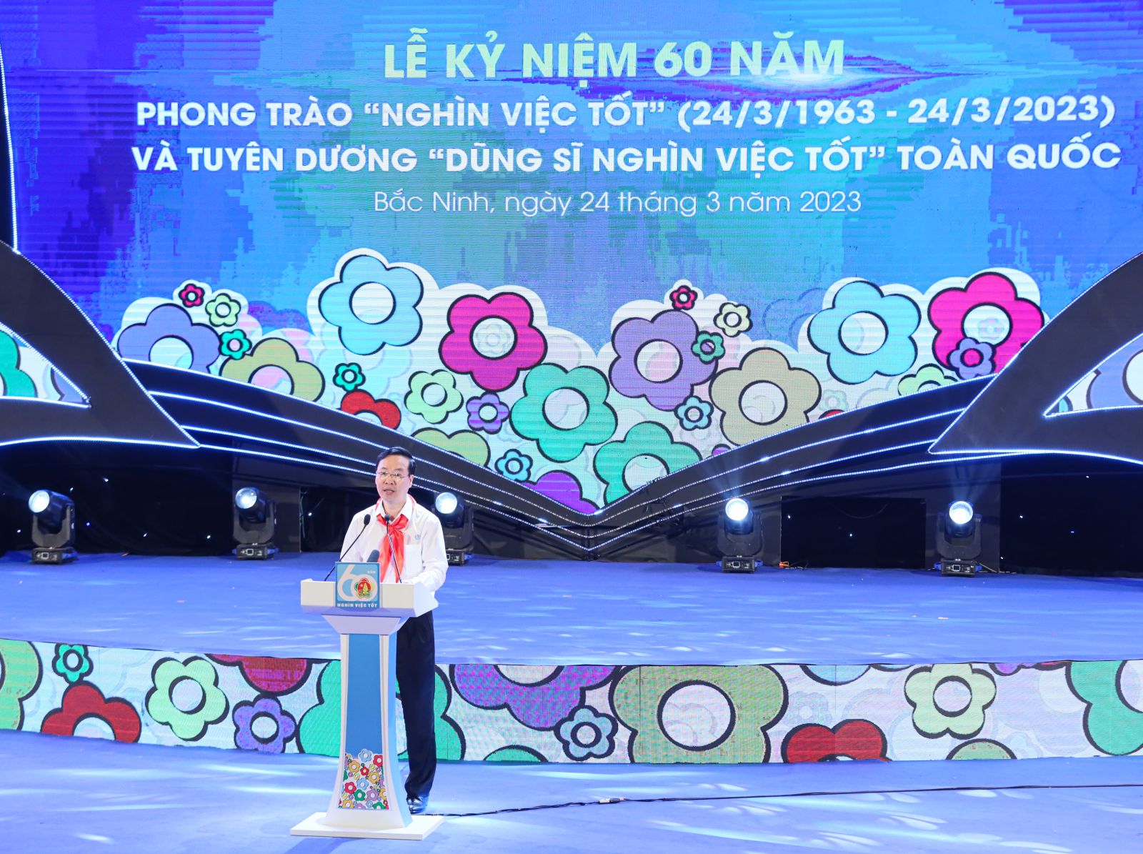 Chúc mừng 1000 "Dũng sỹ Nghìn việc tốt" được tuyên dương, Chủ tịch nước Võ Văn Thưởng khẳng định, 60 năm qua, phong trào “Nghìn việc tốt” đã thực sự là môi trường tốt để các em phấn đấu, rèn luyện, trưởng thành, trở thành những công dân tốt của đất nước. Từ trong phong trào đã xuất hiện nhiều gương thiếu nhi có thành tích xuất sắc được trao tặng danh hiệu “Dũng sĩ Nghìn việc tốt”.
