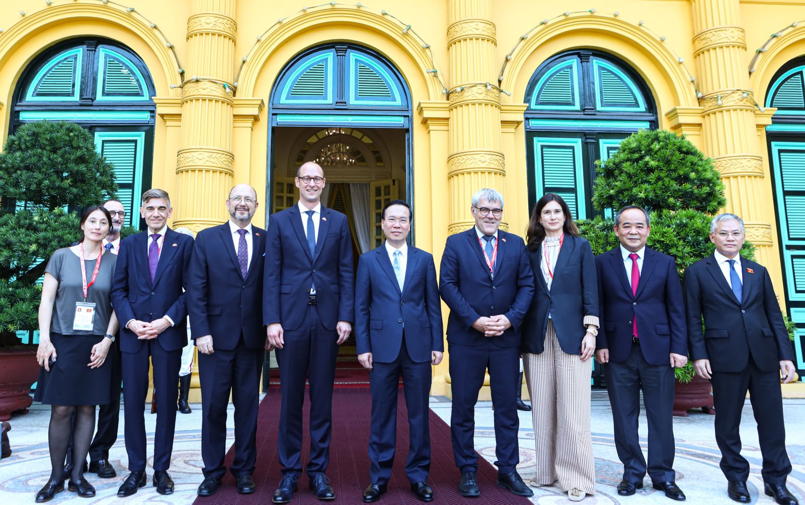 Chủ tịch nước Võ Văn Thưởng tiếp Chủ tịch Hội đồng Quốc gia Thụy Sĩ Martin Candinas và các đại biểu. Ảnh: VPCTN
