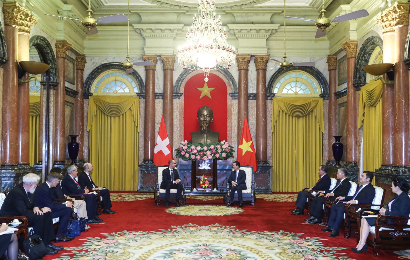 Chủ tịch nước cảm ơn Chính phủ Thụy Sĩ tích cực hỗ trợ ODA, đem lại những hiệu quả tích cực trong tiến trình phát triển kinh tế - xã hội của Việt Nam. Hoan nghênh các hoạt động hợp tác hiệu quả giữa hai nước trong giáo dục đại học, Chủ tịch nước mong muốn hai nước tăng cường hơn nữa hợp tác về vấn đề này. Hai bên cũng cần xúc tiến mạnh mẽ hơn nữa các hoạt động giao lưu nhân dân; góp phần tạo cơ sở vững chắc cho quan hệ hợp tác giữa hai nước trong tương lai.
