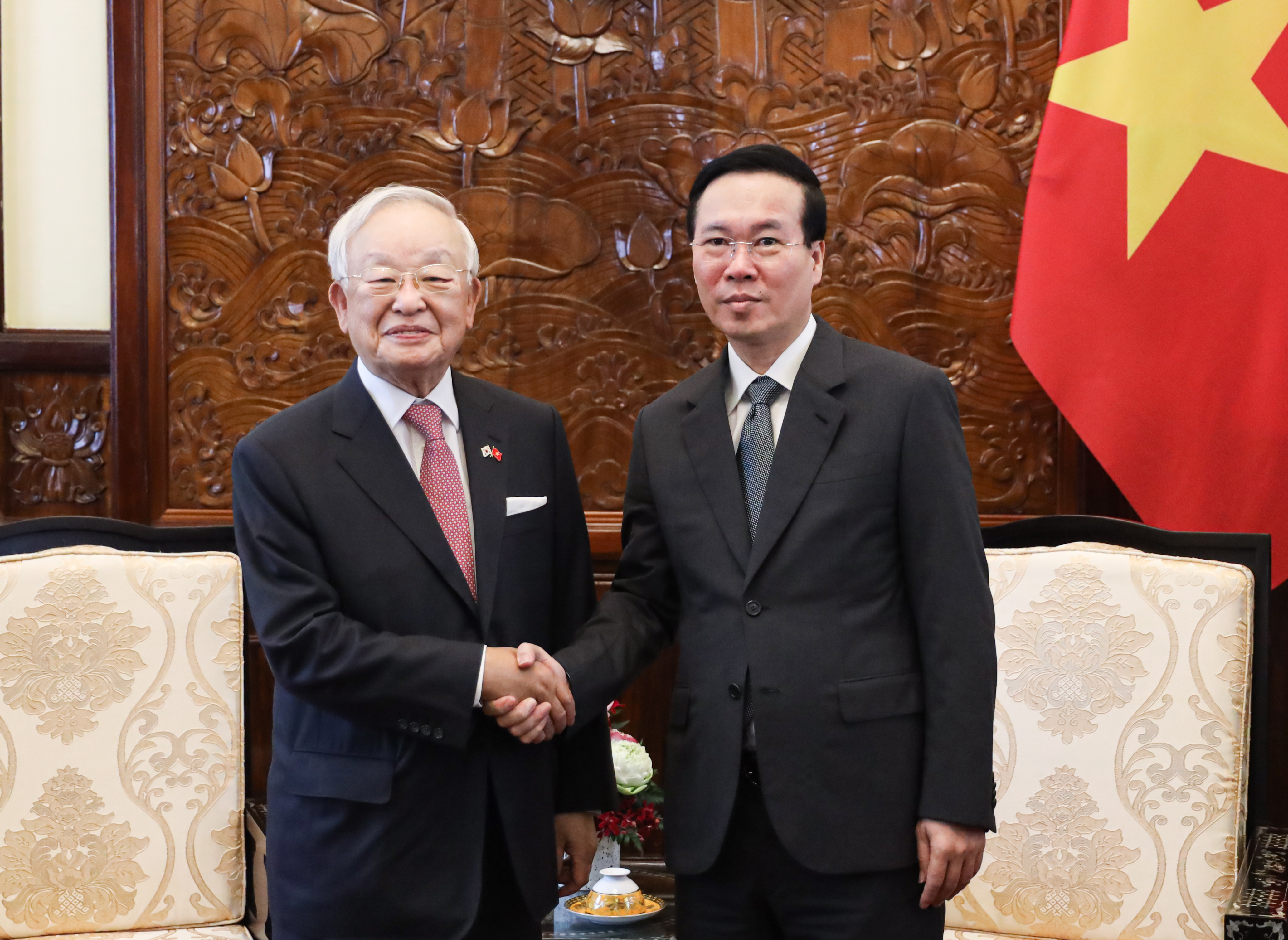 Chủ tịch nước Võ Văn Thưởng tiếp Chủ tịch Liên đoàn giới Chủ các doanh nghiệp Hàn Quốc Sohn Kyung Shik. Ảnh: VPCTN