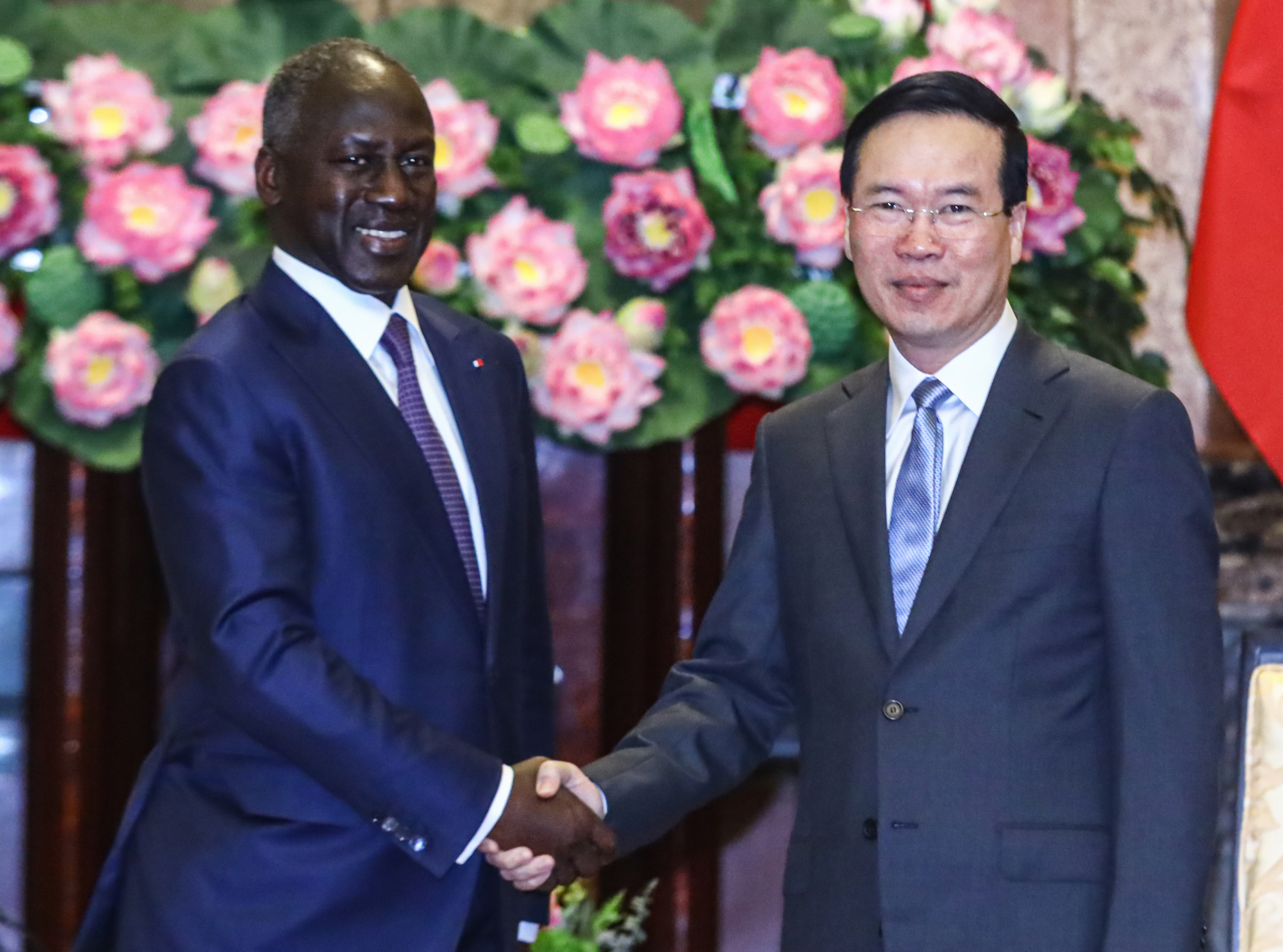 Chủ tịch nước Võ Văn Thưởng tiếp Chủ tịch Quốc hội Bờ Biển Ngà Adama Bictogo. Ảnh: VPCTN