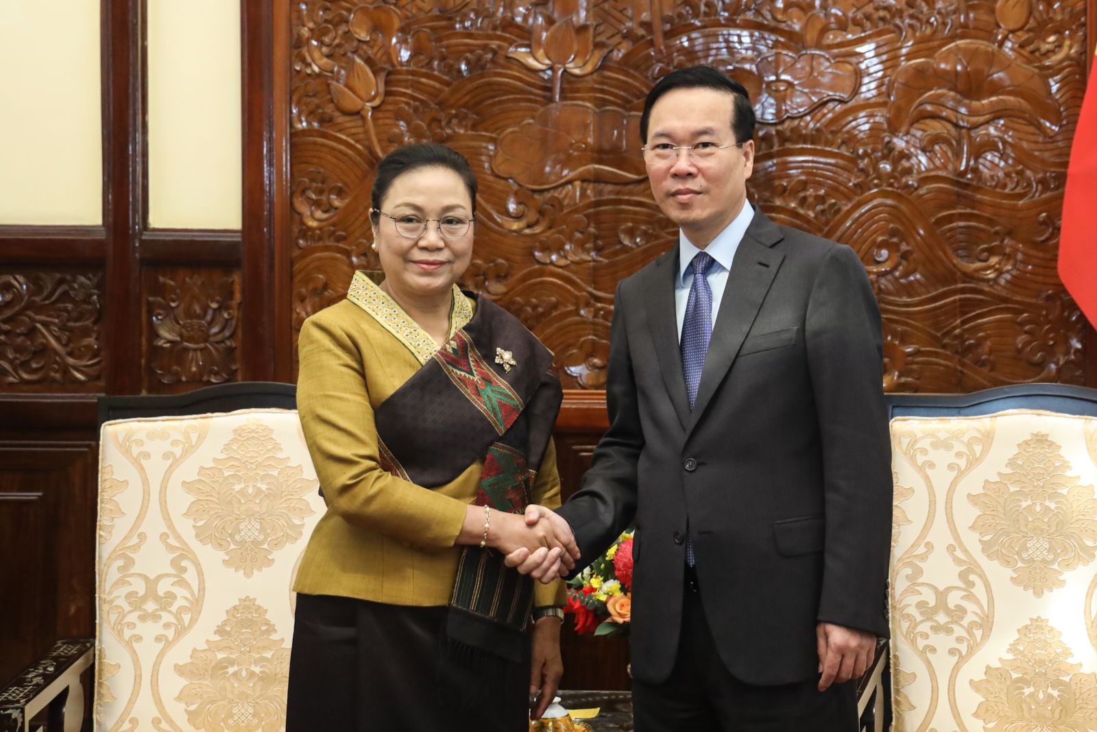 *Tiếp Đại sứ Lào Khamphao Ernthavanh, Chủ tịch nước Võ Văn Thưởng chúc mừng bà Khamphao Ernthavanh được bổ nhiệm Đại sứ Đặc mệnh toàn quyền Cộng hòa Dân chủ Nhân dân Lào tại Việt Nam. Chủ tịch nước tin tưởng với tình cảm, sự gắn bó thân thiết với đất nước, nhân dân Việt Nam, Đại sứ Khamphao Ernthavanh sẽ hoàn thành xuất sắc nhiệm vụ của mình; góp phần quan trọng vào việc vun đắp tình hữu nghị vĩ đại, đoàn kết đặc biệt và hợp tác toàn diện Việt Nam - Lào.