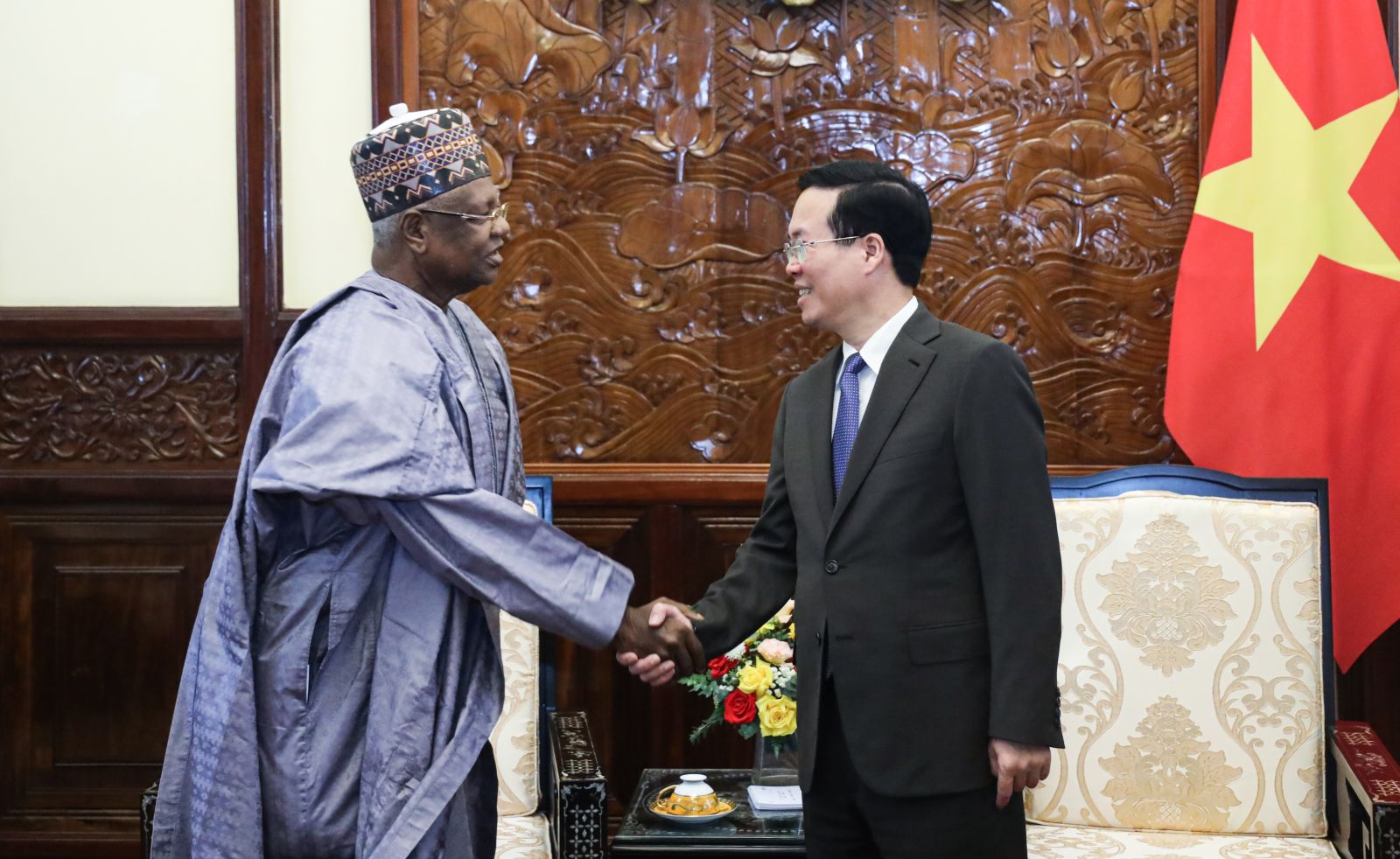 Chủ tịch nước khẳng định, Việt Nam thực hiện nhất quán đường lối đối ngoại độc lập, tự chủ vì hòa bình, hữu nghị, hợp tác và phát triển, đa phương hóa, đa dạng hóa quan hệ đối ngoại; là bạn, là đối tác tin cậy và là thành viên tích cực, có trách nhiệm trong cộng đồng quốc tế. Việt Nam mong muốn phát triển hơn nữa mối quan hệ với Nigeria trong mọi lĩnh vực. Hai bên cần tăng cường tiếp xúc, trao đổi đoàn các cấp; thúc đẩy hơn nữa hợp tác giữa các bộ, ngành, địa phương và duy trì trao đổi, hợp tác đối với các vấn đề của khu vực và trên thế giới