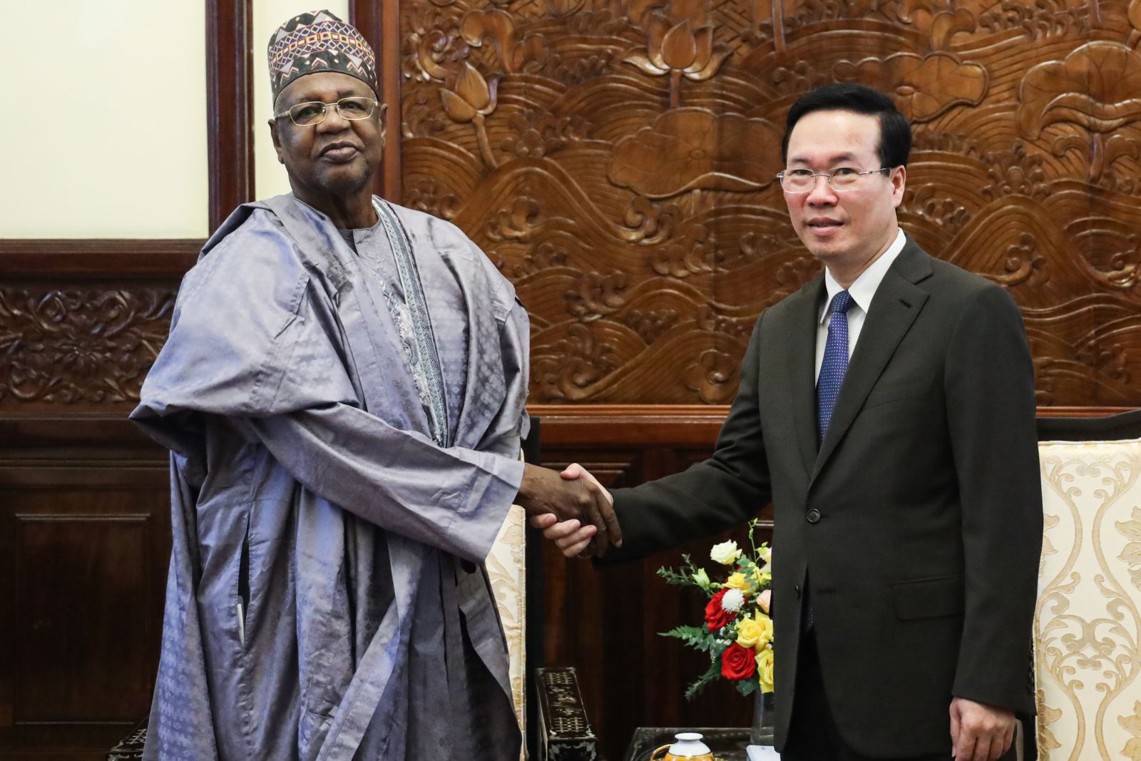 Chủ tịch nước Võ Văn Thưởng tiếp Đại sứ Nigeria Hassan Adamu Mamani. Ảnh: VPCTN
